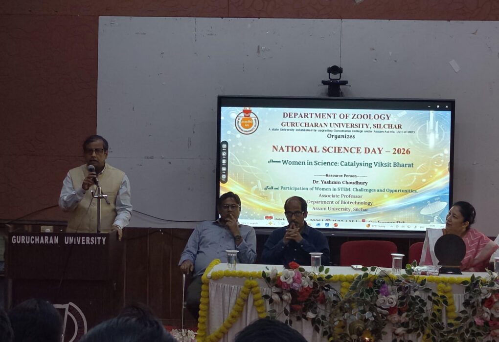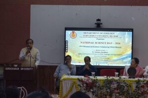 বরাক তরঙ্গ, ২৮ ফেব্রুয়ারি : জাতীয় বিজ্ঞান দিবস ২০২৬ উপলক্ষে, গুরুচরণ বিশ্ববিদ্যালয়ের প্রাণিবিদ্যা বিভাগ এ বছরের থিম “নারী ও বিজ্ঞান-বিকশিত ভারত গঠনে প্রেরণা”–কে কেন্দ্র করে একাধিক প্রতিযোগিতার আয়োজন করে। “দৈনন্দিন জীবনে নারী ও বিজ্ঞান” শীর্ষক ফটোগ্রাফি প্রতিযোগিতায় শিক্ষার্থীরা উৎসাহের সঙ্গে অংশগ্রহণ করে। প্রতিযোগিতাটি প্রাণিবিদ্যা বিভাগের সহকারী অধ্যাপক মিস চন্দ্রমিতা বড়োর তত্বাবধানে অনুষ্ঠিত হয়। প্রতিযোগিতার বিচারক…