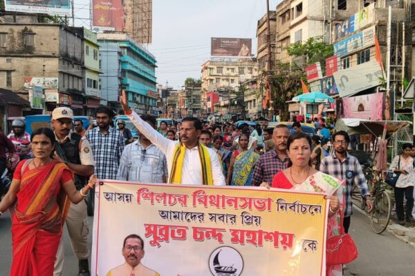 শিলচরে নির্দল প্রার্থী সুব্রত চন্দের পদযাত্রায়