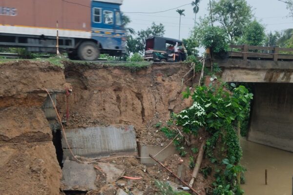 বড়খলায় ধসে পড়ল পথচারী সেতু, নদীতে ঝাঁপ দিয়ে প্রাণ রক্ষা