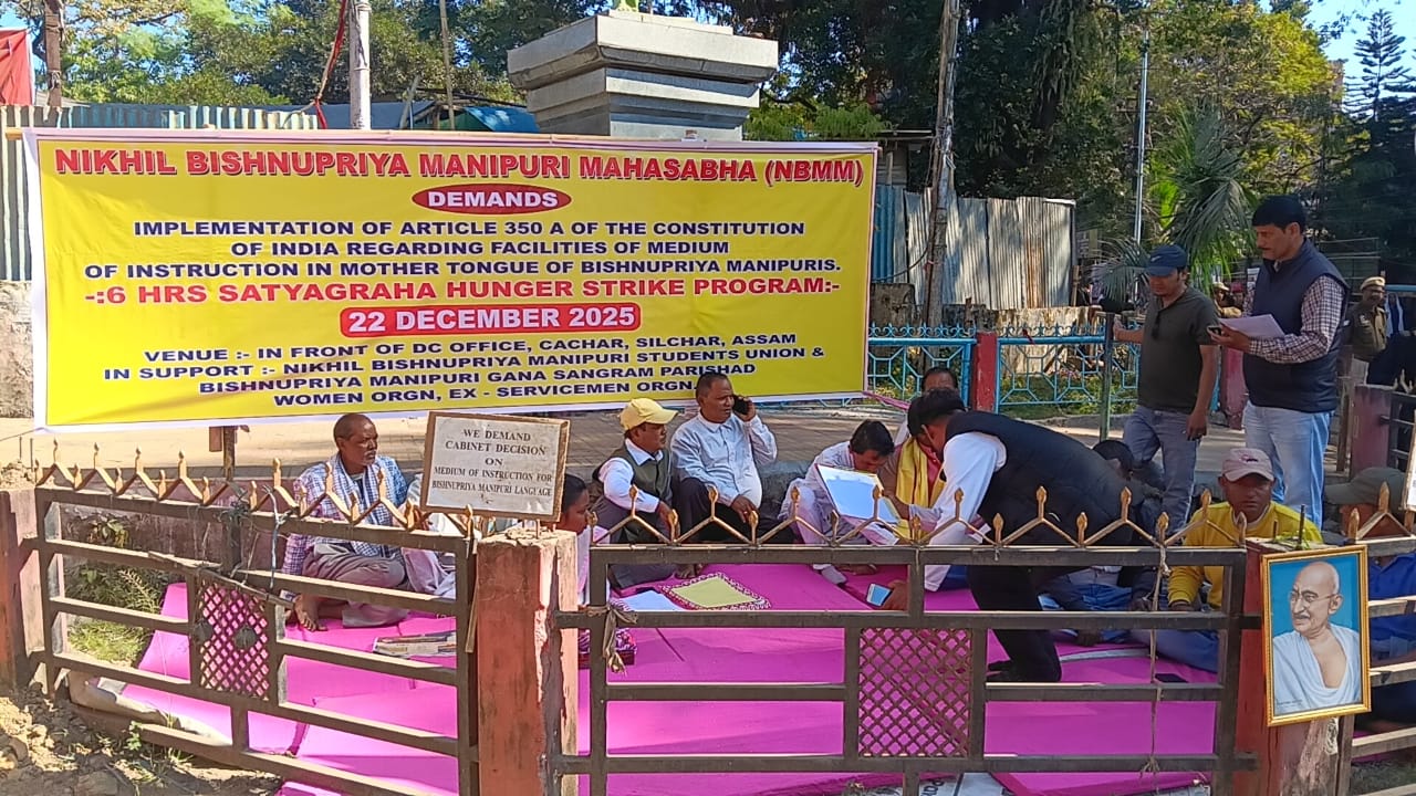 কাছাড় জেলা কমিশনার অফিসের সামনে সকাল ১০টা থেকে দুপুর ৪টা পর্যন্ত চলা এই কর্মসূচিতে নিখিল বিষ্ণুপ্রিয়া মণিপুরি মহাসভার কেন্দ্রীয় কমিটির নেতৃত্বে অসংখ্য সত্যাগ্রহী অংশ নিয়েছে। কর্মসূচির মূল দাবি হল বরাক উপত্যকার কাছাড়, শ্রীভূমি ও হাফলং জেলার প্রাথমিক বিদ্যালয়গুলোতে বিষ্ণুপ্রিয়া মণিপুরি ভাষাকে পাঠমাধ্যম হিসেবে চালু করা। এটি মহাসভার “৭ দফা দাবির খসড়া”-র প্রথম এবং সর্বোচ্চ দাবি। সত্যাগ্রহীদের মধ্যে ছিলেন গোপীদাস সিনহা সহ অন্যান্য নেতা-কর্মী। সত্যাগ্রহের সময় স্লোগান দেওয়া, ব্যানার-প্ল্যাকার্ড প্রদর্শন এবং ভাষা অধিকার নিয়ে আলোচনা সভা অনুষ্ঠিত হয়েছে। সত্যাগ্রহীরা স্মারকপত্রে সংবিধানের অনুচ্ছেদ ৩৫০ক-এর অধীনে তাঁদের দাবি উল্লেখ করে বলেছে, ভাষাগত সংখ্যালঘু বিষ্ণুপ্রিয়া মণিপুরি সম্প্রদায় দীর্ঘদিন ধরে এই দাবি জানিয়ে আসছে এবং বিভিন্ন আন্দোলনমুখর কর্মসূচি আয়োজন করেছে।স্মারকপত্রে ভারতের সাবেক রাষ্ট্রপতি শ্রী রামনাথ কোভিন্দের উদ্ধৃতি তুলে ধরা হয়েছে: “সরকারকে একটি ভাষার সংরক্ষণের জন্য কাজ করতে হবে।” তবু সরকারের উদাসীনতায় ভাষা বিলুপ্তির আশঙ্কা প্রকাশ করা হয়েছে।