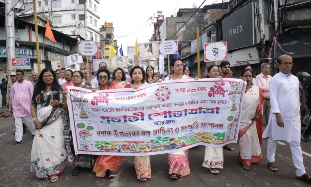 বরাক তরঙ্গ, ১৫ এপ্রিল : বাংলা নববর্ষকে স্বাগত জানাতে পয়লা বৈশাখ উপলক্ষে শিলচর শহরে অনুষ্ঠিত হল এক বর্ণাঢ্য ও দৃষ্টিনন্দন শোভাযাত্রা। বরাক উপত্যকা বঙ্গ সাহিত্য ও সংস্কৃতি সম্মেলনের উদ্যোগে আয়োজিত এই শোভাযাত্রা বুধবার সকাল প্রায় সাতটা নাগাদ শুরু হয়। শিলচর শহর আঞ্চলিক কমিটির পরিচালনায় ১৪৩৩ বঙ্গাব্দের সূচনায় আয়োজিত এই শোভাযাত্রায় শহরের বিভিন্ন সামাজিক, সাংস্কৃতিক ও ক্রীড়া সংগঠনের প্রতিনিধিরা উৎসাহভরে অংশগ্রহণ করেন। বাংলা সংস্কৃতির বৈচিত্র্য তুলে ধরে তারা সমাজে ঐক্য, সম্প্রীতি ও সচেতনতার বার্তা প্রচার করেন।