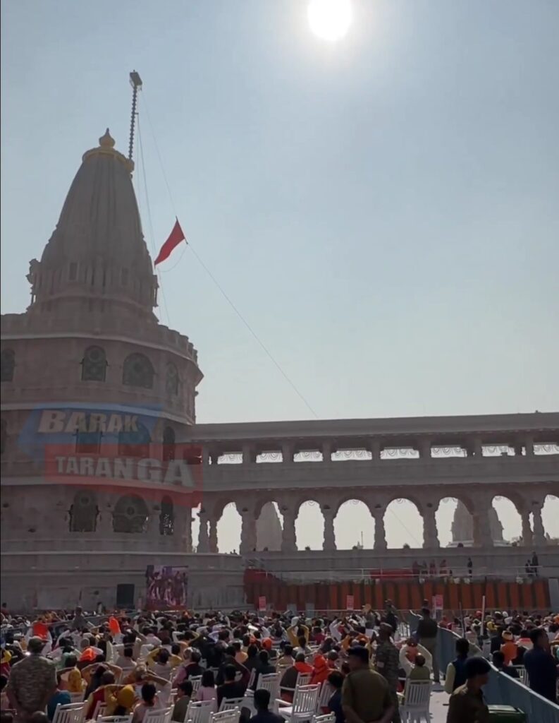 এদিন মার্গশীর্ষ মাসের শুক্ল পক্ষের পঞ্চমী তিথি। পুণ্য অভিজিৎ-মুহূর্তে রামরাজ্যের প্রতীকস্বরূপ বিশালাকার ওই পতাকা উত্তোলন করেন মোদি। তাঁর সঙ্গে ছিলেন সরসঙ্ঘচালক মোহন ভাগবত, উত্তরপ্রদেশের মুখ্যমন্ত্রী যোগী আদিত্যনাথ, রাজ্যপাল আনন্দীবেন প্যাটেল। ‘ধ্বজারোহণ’ অনুষ্ঠানের পর মোদি বলেন, ‘আজ সারা পৃথিবী রামময়! কত শতাব্দীর ক্ষত আজ পূরণ হল! ৫০০ বছরের যজ্ঞ ও সাধনার ফল এই মন্দির। এত বছর ধরে সেই যজ্ঞাগ্নি নির্বাপিত হয়নি।’