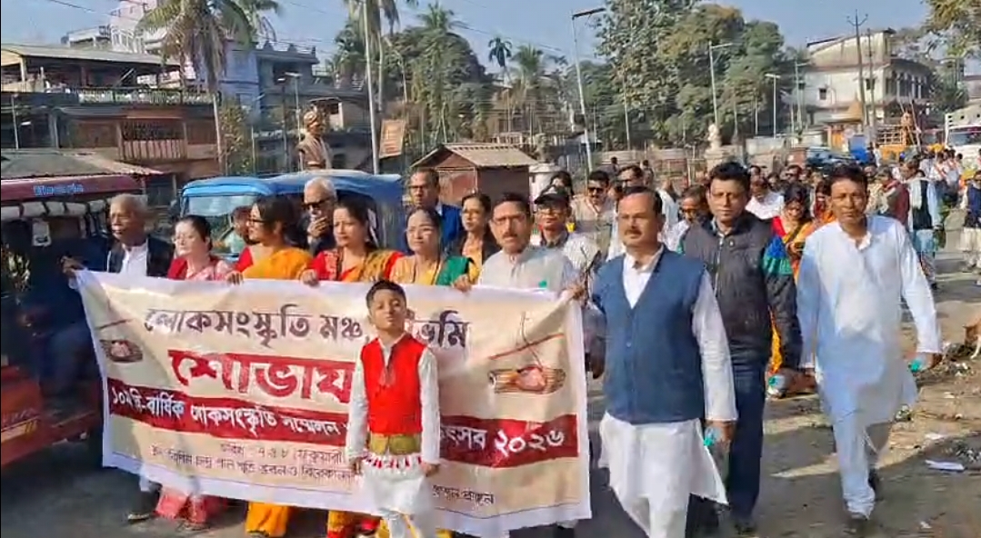 বরাক তরঙ্গ, ৭ ফেব্রুয়ারি : ব্যাপক উৎসাহ-উদ্দীপনার মধ্য দিয়ে শ্রীভূমি শহরে শুরু হল লোক সংস্কৃতি মঞ্চের উদ্যোগে দু’দিনব্যাপী লোকসংস্কৃতি সম্মেলন ও উৎসব। শনিবার সকালে এক বিশাল বর্ণাঢ্য শোভাযাত্রার মাধ্যমে উৎসবের সূচনা হয়। সকাল ৮টায় বিবেকানন্দ কলেজ অব এডুকেশন প্রাঙ্গণ থেকে শোভাযাত্রা বের হয়। এতে বিভিন্ন স্কুলের পড়ুয়ারা অংশ নেন। একই সঙ্গে মঞ্চের পতাকা উত্তোলন করেন লোক সংস্কৃতি মঞ্চের সভাপতি সুবীর বরণ রায় ও অভ্যর্থনা সমিতির সভাপতি জগদীশ চন্দ্র বণিক।