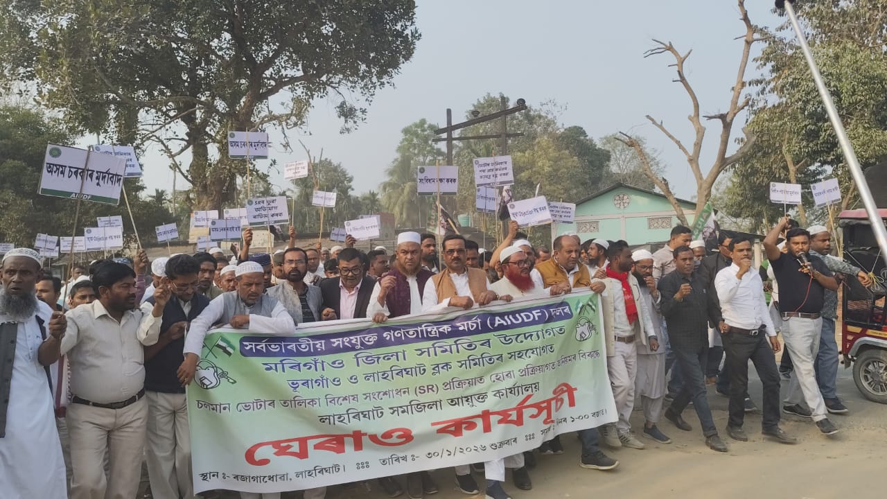 কর্মসূচিতে লাহরিঘাট সমজেলা কার্যালয়েও জেলা এআইইউডিএফ কমিটির পক্ষ থেকে জেলা সভাপতি সিদ্দিক আহমেদ, ধিং বিধানসভা কেন্দ্রের বিধায়ক আলহাজ আমিনুল ইসলাম, কেন্দ্রীয় সম্পাদক চম্পক কলিতা, নগাঁও জেলা কমিটির সভাপতি মতিউর রহমানের পাশাপাশি লাহরিঘাট ব্লক সভাপতি হাফিজ আব্দুল রাজাক, সম্পাদক আসকার আলি, বাকি বিল্লাহ এবং ভুরাগাঁও ব্লক সভাপতি হিফজুর রহমানের নেতৃত্বে সহস্রাধিক দলীয় কর্মী হাতে প্ল্যাকার্ড নিয়ে বিভিন্ন স্লোগান দিয়ে সমজেলা কমিশনারের কাছে স্মারকলিপি প্রদান করেন।
