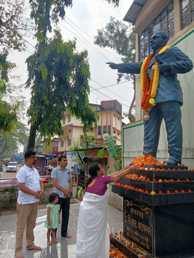 বরাক তরঙ্গ, ১৪ এপ্রিল : ভারতের সংবিধান নির্মাতা’ ভারতরত্ন বাবাসাহেব ড. ভীম রাও আম্বেদকরের ১৩৫তম জন্মবার্ষিকী উদযাপন করল ‘লায়ন্স ক্লাব অব শিলচর ভ্যালি ভিউ’। এ উপলক্ষে মঙ্গলবার ক্লাবের একটি প্রতিনিধিদল সভানেত্রী বন্দিতা ত্রিবেদী রায়ের নেতৃত্বে শিলচর অফিস পাড়ায় অবস্থিত আম্বেদকরের মূর্তিতে মাল্যদান ও পুষ্পার্ঘ্য অর্পণের মাধ্যমে শ্রদ্ধা নিবেদন করে।