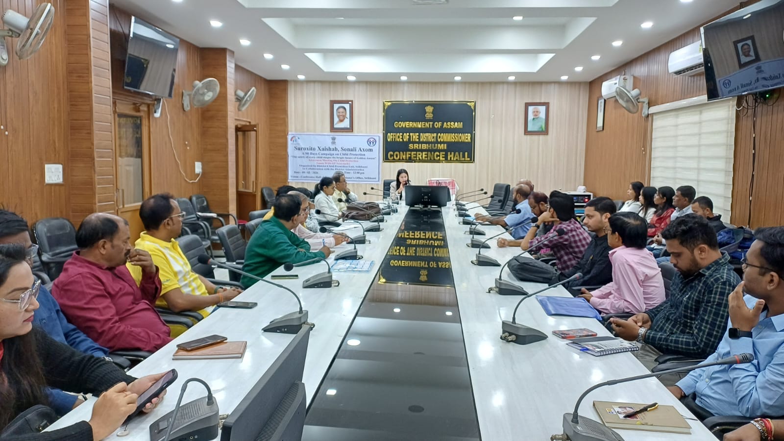 বরাক তরঙ্গ, ৯ ফেব্রুয়ারি : শ্রীভূমি জেলার শিশুদের সুরক্ষায় ও তাদের সব ধরণের অধিকার প্রদান করতে সমগ্র রাজ্যের সাথে শ্রীভূমি জেলায়ও চলতে থাকা ৯০ দিবসীয় অভিযান “সুরক্ষিত শৈশব সোনালি অসম” কার্যসূচির অধীনে সোমবার জেলার সব গ্রাম পঞ্চায়েত সচিব ও ছাত্র ইউনিয়নের প্রতিনিধিদের নিয়ে পৃথক দুটি সচেতনতা কার্যসূচি অনুষ্ঠিত হয়েছে। শ্রীভূমি জেলা আয়ুক্ত কার্যালয়ের সভাকক্ষে সহকারী আয়ুক্ত ও ভারপ্রাপ্ত জেলা শিশু সুরক্ষা আধিকারিক অন্বেষা খেরসার সভাপতিত্বে এই সচেতনতা কার্যসূচি অনুষ্ঠিত হয়। এতে জেলার দুইজন রিসোর্স পার্সন চাইল্ড ওয়েলফেয়ার কমিটির চেয়ারম্যান বিশ্ব বরণ বরুয়া ও শিশু সুরক্ষা বিষয়ে অভিজ্ঞ রিসোর্স পার্সন সত্যজিৎ দাস শিশু সুরক্ষার বিভিন্ন দিক নিয়ে উপস্থিত সবাইকে সচেতন করেন। শ্রীভূমির জেলা শিশু সুরক্ষা ইউনিটের উদ্যোগে এবং শ্রীভূমি জেলা প্রশাসনের সহযোগিতায় অনুষ্ঠিত এই সচেতনতা কর্মসূচিতে গ্রাম পঞ্চায়েত সচিব তথা সিএমপিও বা চাইল্ড ম্যারেজ প্রহিবিশন অফিসার ও ছাত্র ইউনিয়নের সদস্যদের শিশু শ্রম, বাল্যবিবাহ, শিশু পাচার, বেআইনি শিশু দত্তকের মত ঘৃণ্য অপরাধগুলি নিরসনে করণীয় ব্যবস্থা ও পকসো আইন নিয়ে সচেতন করা হয়। এতে জানানো হয় শিশুকে শ্রমিক হিসেবে নিয়োগ করা আইনত দন্ডনীয় অপরাধ। এর শাস্তি হিসেবে ৬ মাস থেকে ২ বছর পর্যন্ত কারাবাস বা ২০ হাজার থেকে ৫০ হাজার টাকা পর্যন্ত জরিমানা বা দুটোই হতে পারে। ১৪ বছর থেকে নিচের কোন শিশুকে কাজে নিয়োগ করা যাবে না। ১৪ থেকে ১৮ বছরের নিচে কোন ছেলেমেয়েকে ঝুকিপূর্ণ কাজ করানো যাবে না বলে জানানো হয়। পাশাপাশি, জানানো হয় বাল্যবিবাহ আইনত দন্ডনীয় অপরাধ এর শাস্তিস্বরূপ দুই বছরের কারাবাস অথবা এক লক্ষ টাকা জরিমানা বা দুটোই হতে পারে। বিবাহের বয়স মেয়েদের ১৮ বছরের বেশি ও ছেলেদের ২১ বছরের উর্দ্ধে হতে হবে। এতে আরও জানানো হয় শিশু পাচারের মত ঘৃণ্যতম অপরাধের শাস্তি হিসেবে ১০ বছর থেকে সারাজীবনের জন্য জেল ও সাথে নূন্যতম এক লক্ষ টাকা জরিমানা হতে পারে। এতে শিশু দত্তক নেওয়ার জন্য সেন্ট্রাল চাইল্ড অ্যাডপশন রিসোর্স অথরিটি বা কারা-র ওয়েবসাইটে রেজিষ্ট্রেশন বাধ্যতামূলক বলে জানানো হয়। যে কোন অনাথ, পরিত্যক্ত, সমর্পিত শিশুকে সরকারি বিধিনিয়ম মেনে দত্তক নিতে হবে। বেআইনি দত্তক দন্ডনীয় অপরাধ। এর শাস্তি হিসেবে ৩ বছরের কারাবাস বা এক লক্ষ টাকা জরিমানা অথবা দুটোই হতে পারে।