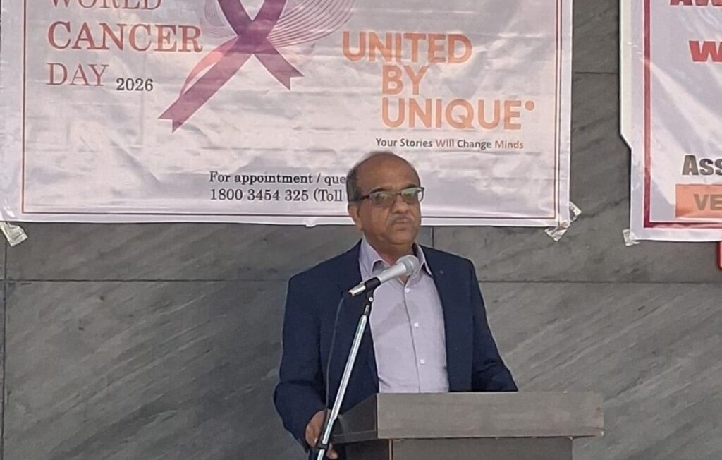বরাক তরঙ্গ, ৪ ফেব্রুয়ারি : বিশ্ব ক্যান্সার দিবস উপলক্ষে মঙ্গলবার সিলচর ক্যান্সার সেন্টারে ক্যান্সার প্রতিরোধ, প্রাথমিক পর্যায়ে শনাক্তকরণ এবং চিকিৎসা সংক্রান্ত সচেতনতা বৃদ্ধির লক্ষ্যে একাধিক কর্মসূচির আয়োজন করা হয়। সকাল ৯টা থেকে একটি ক্যান্সার সচেতনতা র্যালি ও পতাকা উত্তোলন অনুষ্ঠানের মাধ্যমে কর্মসূচির সূচনা হয়। র্যালির নেতৃত্ব দেন সিলচর ক্যান্সার সেন্টারের মেডিক্যাল সুপারিনটেনডেন্ট কর্নেল ডাঃ বিশ্বজিৎ ঘোষ। হাসপাতালের চিকিৎসক, কর্মী, রোগী ও রোগীর স্বজনরা সক্রিয়ভাবে র্যালিতে অংশগ্রহণ করেন। র্যালির মূল উদ্দেশ্য ছিল ক্যান্সারের প্রাথমিক লক্ষণ, সময়মতো চিকিৎসকের শরণাপন্ন হওয়ার গুরুত্ব এবং সচেতনতা ছড়িয়ে দেওয়া।