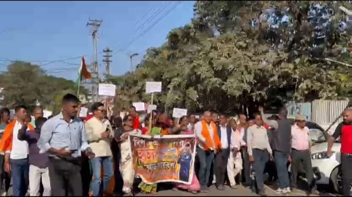 বরাক তরঙ্গ, ২৬ ডিসেম্বর : কাছাড় জেলার দুধপাতিল এলাকা থেকে বজরং দল সহ বিভিন্ন হিন্দুত্ববাদী সংগঠনের কর্মী-সমর্থকরা বিশাল মিছিল করে শিলচরের ক্ষুদিরাম মূর্তির পাদদেশে জমায়েত হন। সেখানে জনসমাগমে সম্প্রতি বাংলাদেশের নৃশংস হত্যাকাণ্ডের প্রতিবাদ জানানো হয়। প্রতিবাদ সমাবেশ শেষে ইউনুস সরকারের কুশপুতুল দাহ করা হয়। এবং প্রধানমন্ত্রীর উদ্দেশ্যে একটি স্মারকলিপি প্রদান করা হয়। হয়।