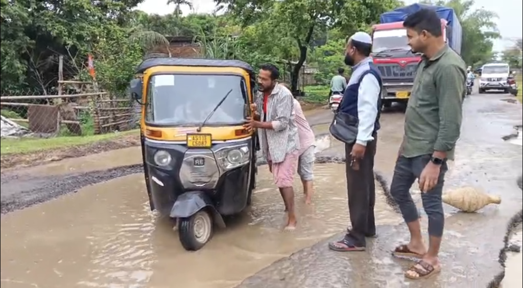 বরাক তরঙ্গ, ২৯ এপ্রিল : দীর্ঘদিন ধরে শিলচর-কালাইন সড়কের বিভিন্ন অংশে অসংখ্য বড় বড় গর্ত তৈরি হয়ে জনদুর্ভোগ চরমে পৌঁছেছে। বড়খলা বিধানসভা এলাকার ভাঙ্গারপার, মোহনপুর, তিনঘরী, জ্বলাগ্রামসহ একাধিক স্থানে সড়কের অবস্থা এতটাই খারাপ যে, গর্তগুলো প্রায় পুকুরের আকার নিয়েছে। বর্ষার শুরুতেই পরিস্থিতি আরও ভয়াবহ হয়ে ওঠায় জনজীবন কার্যত বিপর্যস্ত হয়ে পড়েছে। সবচেয়ে বেশি সমস্যায় পড়ছেন স্কুল-কলেজের ছাত্রছাত্রী থেকে শুরু করে সাধারণ পথচারী ও যানবাহন চালকেরা। প্রতিদিন হাজার হাজার মানুষকে জীবনের ঝুঁকি নিয়ে এই সড়ক দিয়ে যাতায়াত করতে হচ্ছে।