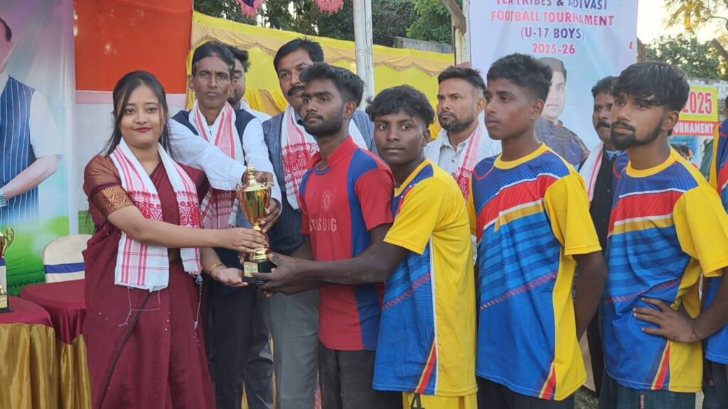 বরাক তরঙ্গ, ১২ ডিসেম্বর : ধলাই বিএনএমপি স্কুল খেলার মাঠে অনুষ্ঠিত মুখ্যমন্ত্রী চা জনজাতি ও আদিবাসী অনূর্ধ্ব–১৭ ফুটবল টুর্নামেন্টে ধলাই বিধানসভা চ্যাম্পিয়ন হল ওয়েস্ট জালেঙ্গা চা-বাগান। ধলাই কেন্দ্রে নয়টি চা বাগান দল প্রতিযোগিতায় অংশ নেয়। গত ৯ ডিসেম্বর থেকে শুরু হওয়া এই প্রতিযোগিতার ফাইনাল ম্যাচ অনুষ্ঠিত হয় শুক্রবার। ফাইনালে মুখোমুখি হয় মনিয়ারখাল চা-বাগান ও ওয়েস্ট জালেঙ্গা চা বাগান। নির্ধারিত সময়ে গোলশূন্য ড্র হওয়ার পর টাইব্রেকারে ৫–৪ গোলে জয় লাভ করে ওয়েস্ট জালেঙ্গা।