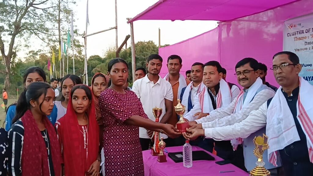 বরাক তরঙ্গ, ২২ ডিসেম্বর : মাই ভারত কাছাড়ের উদ্যোগে ও ফ্রেঞ্চনগর কর্মায়ন সংস্থার সহযোগিতায় ক্লাস্টার লেভেল স্পোর্টস মিট প্রতিযোগিতা সম্পন্ন হয়েছে ধলাইয়ে। ধলাই বিএনএমপি এইচএস স্কুল খেলার মাঠে দুই দিবসীয় প্রতিযোগিতায় ফুটবলে চ্যাম্পিয়ন হয়েছে লোকনাথপুর ইয়াং স্টার দল, রানার্সআপ হয়েছে লায়লাপুর পল্লী উন্নয়ন ক্লাব। মেয়েদের কবাডি প্রতিযোগিতায় চ্যাম্পিয়ন হয়েছে ধলাই বিএনএমপি সুপার দল ও রানার্সআপ পালংঘাট সিসিজেসি দল। মেয়েদের ১০০ মিটার দৌড়ে প্রথম মিনারা বেগম বড়ভূইয়া, দ্বিতীয় সাইরু বেগম ও তৃতীয় গঙ্গারানি রায়। ছেলেদের ২০০ মিটার দৌড়ে প্রথম সাজিদ লস্কর, দ্বিতীয় সুরজ হাজাম ও তৃতীয় চুট্টু রায়। মেয়েদের ব্যাডমিন্টনে প্রথম মিনারা বেগম বড়ভূইয়া, দ্বিতীয় চুন্নিকা ফিরদুস লস্কর ও তৃতীয় দীপিকা নাথ। ছেলেদের ব্যাডমিন্টনে প্রথম সঞ্চয় দত্ত, দ্বিতীয় সনি রায় ও তৃতীয় ফিরোজ আহমেদ লস্কর। স্পোর্টস মিটের প্রতিটি খেলায় প্রথম, দ্বিতীয় ও তৃতীয় স্থান অধিকার করা প্রতিযোগিদের হাতে পুরষ্কার তুলে দেন প্রধান অতিথি বিধায়ক নীহার রঞ্জন দাস সহ অন্যান্যরা।