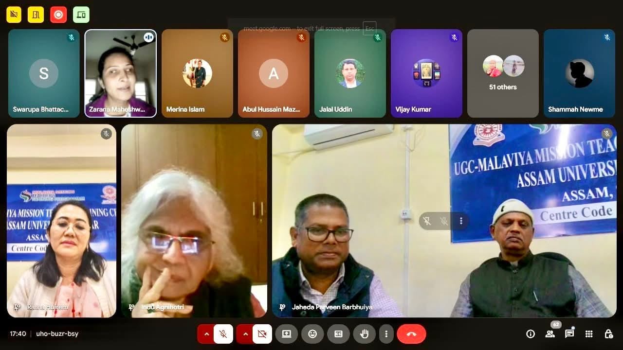 উদ্বোধনী অনুষ্ঠানে পৌরোহিত্য করেন আসাম বিশ্ববিদ্যালয়ের ভারপ্রাপ্ত উপাচার্য অধ্যাপক অসোক কুমার সেন। উদ্বোধনী বক্তৃতা প্রদান করেন মুম্বই বিশ্ববিদ্যালয়ের অধ্যাপক রিতু দেবান। অনুষ্ঠানে উপস্থিত ছিলেন অধ্যাপক আর. বালাকৃষ্ণন, অধ্যাপক অজয় কুমার সিং, অধ্যাপক জয়তী ভট্টাচার্য, অধ্যাপক এম. তিনেশ্বরী দেবী সহ কর্মসূচির সমন্বয়কারী ড. রত্না হুইরেম ও ড. কাথিরেসান এল।