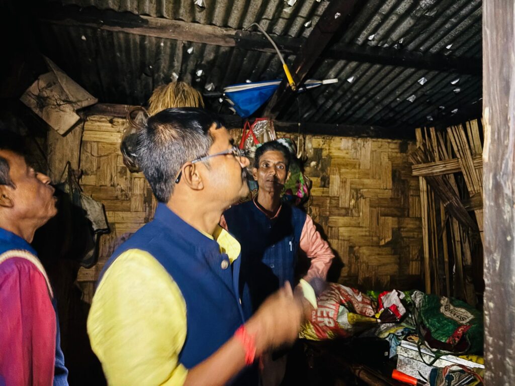 এলাকা পরিদর্শনের সময় বিধায়ক দেখতে পান বহু মানুষের চাল ফুঁটো হয়ে ঘরে জল পড়ছে। ঘরের বিছানাপত্র, আসবাবপত্র ভিজে ব্যাপক ক্ষতি হয়েছে। অনেকের ঘরের চাল সম্পূর্ণ উড়ে গেছে। তিনি এব্যাপারে কাছাড়ের জেলা আয়ুক্ত আয়ুস গর্গ ও ধলাই সমজেলা আয়ুক্ত রক্তিম বরুয়ার সাথে কথা বলেন এবং অনতিবিলম্বে ক্ষতিগ্রস্ত লোকদের জন্য প্রয়োজনীয় ক্ষতিপূরণের ব্যবস্থা গ্রহণ করার পরামর্শ দেন।