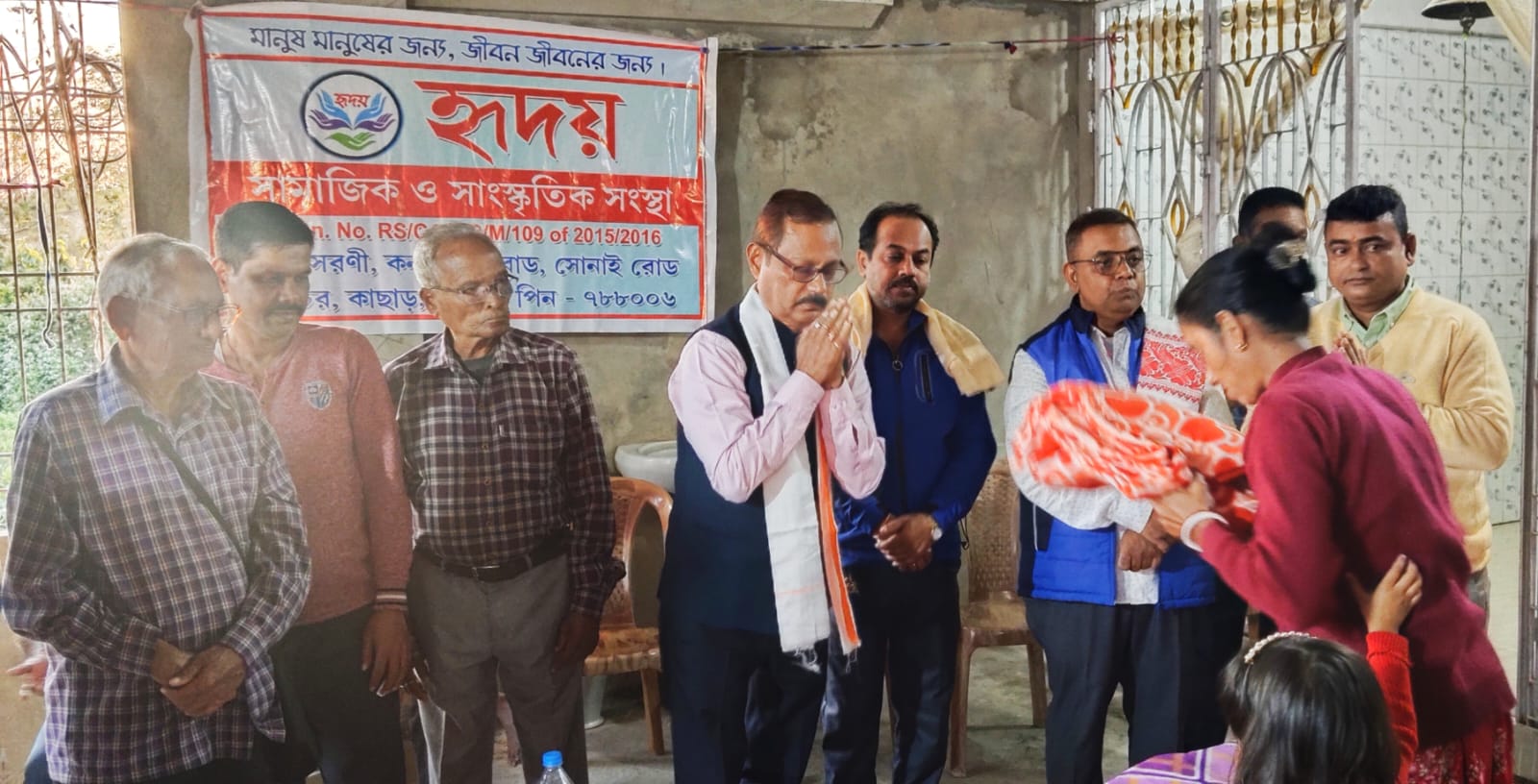শেষে রাধারমণ গোস্বামীজির মন্দির, দুর্গানগর তারাপুরের দুঃস্থদের মধ্যে কম্বল বিতরণ করে হৃদয়। এতে আশ্রম কর্তৃপক্ষ বিশেষ করে নীরেন পাল বিতরণ অনুষ্ঠানে সহযোগিতার হাত বাড়িয়ে দেন। সব কয়টি অনুষ্ঠানে সাহায্যের হাত বাড়িয়ে দেন স্টেট ব্যাঙ্ক অব ইন্ডিয়া রিজিওনাল ম্যানেজার নীলোৎপল ধর চৌধুরী। বিগত দিনেও তিনি অতপ্রতভাবে সমাজসেবায় অগ্রণী ভূমিকা নিয়েছিলেন। আগামী ৩১শে ডিসেম্বর তাঁর কর্মজীবনের শেষ দিন। স্টেট ব্যাঙ্ক থেকেও কর্মজীবনে অনেক লোকের সাহায্যে তিনি এগিয়ে এসেছেন। আজও কর্মজীবনের শেষ প্রান্তে তিনি কম্বল বিতরণ করে দৃষ্টান্ত স্থাপন করেছেন। এদিন হৃদয়ের পক্ষে ছিলেন কোষাধ্যক্ষ রাতুল চক্রবর্তী ও সদস্য প্রদীপ পাল।