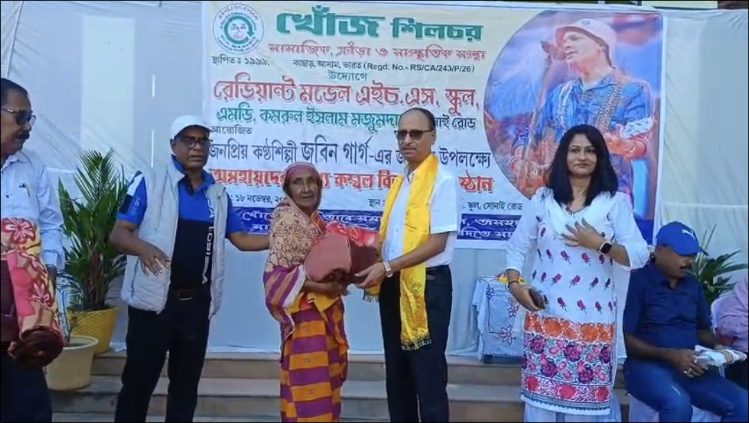 বরাক তরঙ্গ, ১৮ নভেম্বর : জনপ্রিয় সঙ্গীতশিল্পী জুবিন গর্গের ৫৩তম জন্মদিন উপলক্ষে খোঁজ শিলচর এবং রেডিয়েন্ট মডেল এইচএস স্কুলের যৌথ উদ্যোগে ১৮০ জন অসহায় মানুষের মধ্যে কম্বল বিতরণ করা হয়। জনপ্রিয় শিল্পীর জন্মদিনকে স্মরণীয় করে তুলতে এদিন শিলচর সোনাই রোডস্থিত রেডিয়েন্ট স্কুল চত্বরে বিভিন্ন অনুষ্ঠানের আয়োজন করা হয়।