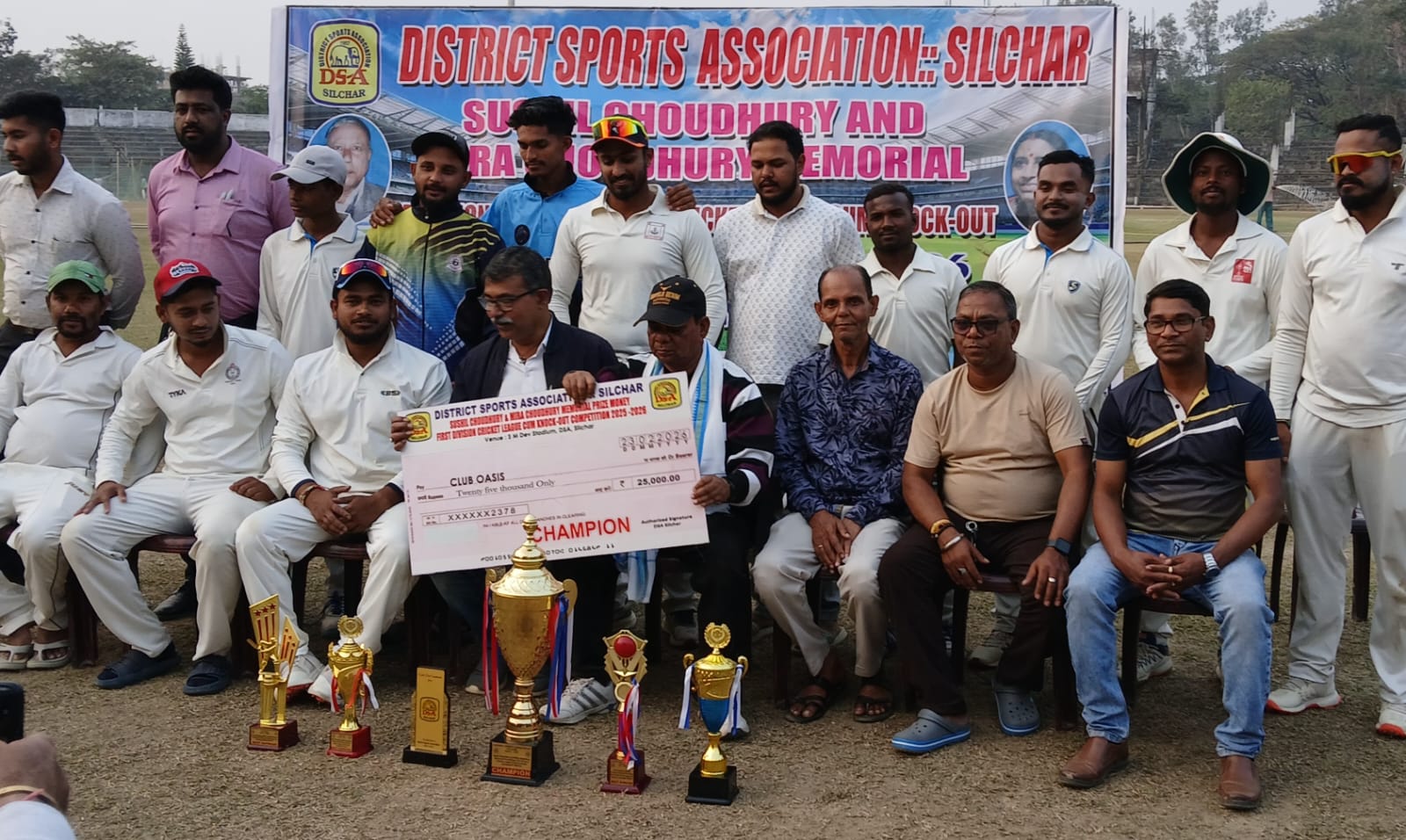 বরাক তরঙ্গ, ২৩ ফেব্রুয়ারি: শিলচর ডিএসএ আয়োজিত সুশীল চৌধুরী ও মীরা চৌধুরী স্মৃতি এ ডিভিশন ক্রিকেট প্রতিযোগিতায় চ্যাম্পিয়নের খেতাব জিতলো ক্লাব ওয়েসিস। সেই সুবাদে আগামী মরশুমে সুপার ডিভিশনে খেলার ছাড়পত্র আদায় করে নিল তারা। আগেই সুপার ডিভিশন থেকে অবনমন ঘটেছে উদারবন্দ টেবিল টেনিস ক্লাবের। সেই শূন্যস্থান পূরণ করবে ক্লাব হয়েছে।