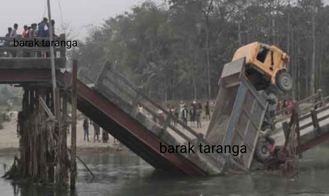প্রচুর মানুষের ভিড় ছিল। সেই সময় জটেশ্বর থেকে একটি বালিবোঝাই ডাম্পার সেতু পার হয়ে দেওগাঁওয়ের দিকে যাচ্ছিল। ডাম্পারটি সেতুর ঠিক মাঝামাঝি পৌঁছাতেই বিকট শব্দে সেতুর একাংশ ডাম্পারসহ নিচে ধসে পড়ে। দুর্ঘটনার তীব্রতায় কেঁপে ওঠে সংলগ্ন এলাকা। বরাতজোরে ডাম্পার চালক অক্ষত অবস্থায় উদ্ধার পেলেও যানটি সেতুর ভাঙা অংশে বিপজ্জনকভাবে আটকে পড়ে।