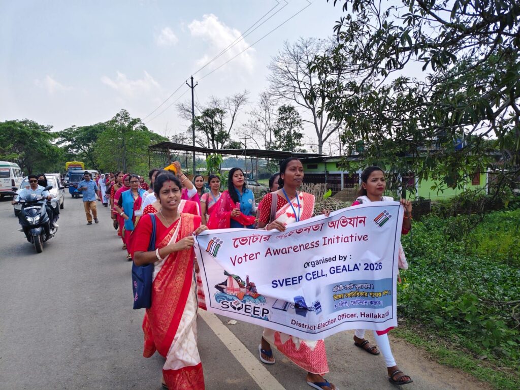 বরাক তরঙ্গ, ১ এপ্রিল : আগামী ৯ এপ্রিল অনুষ্ঠিতব্য বিধানসভা নির্বাচনকে সামনে রেখে হাইলাকান্দি জেলায় ভোটার সচেতনতা অভিযান জোরদার করা হয়েছে। ভারতীয় নির্বাচন কমিশনের নির্দেশ অনুসারে জেলার বিভিন্ন প্রান্তে সচেতনতা কর্মসূচি গ্রহণ করা হয়েছে, যার অংশ হিসেবে বুধবার আলগাপুর এলাকায় আয়োজন করা হয় সচেতনতা সভা ও শোভাযাত্রা।