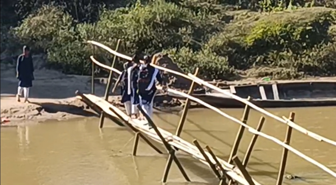 এলাকার মানুষের ভরসা আজও একটি অস্থায়ী বাঁশের সাঁকো। বন্যার জল এলেই ভেসে যায় সাঁকোটি, আর ভেসে যাওয়ার সঙ্গে সঙ্গে ভেঙে পড়ে সাধারণ মানুষের স্বপ্ন ও নিত্যদিনের জীবনযাত্রা। নদীর উপর পাকা সেতু না থাকায় হাজারো মানুষকে প্রতিদিন ঝুঁকি নিয়ে পার হতে হয় এই অস্থায়ী পথ। ভোরে স্কুলগামী শিক্ষার্থীরা, কর্মজীবী মানুষ, রোগী ও বৃদ্ধ—সবারই জীবনে রুটিন হয়ে দাঁড়িয়েছে ভয় নিয়ে চলাচল করা।