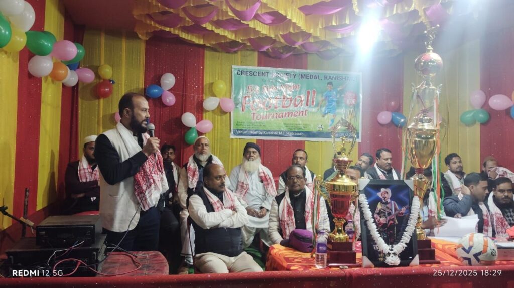বরাক তরঙ্গ, ২৫ ডিসেম্বর : খেলাধুলার মাধ্যমে সামাজিক সম্প্রীতি ও যুবসমাজকে ক্রীড়ামুখী করার লক্ষ্য নিয়ে কানিশাইলে ফাইভ-এ সাইড নাইট ফুটবল টুর্নামেন্টের সূচনা হয়েছে। বৃহস্পতিবার সন্ধ্যা ৬টায় কানিশাইল ক্রিসেন্ট সোসাইটির আয়োজনে প্রতিযোগিতার উদ্বোধনী অনুষ্ঠান অনুষ্ঠিত হয়। কানিশাইলে ফাইভ-এ সাইড নাইট ফুটবল টুর্নামেন্ট আনুষ্ঠানিক উদ্বোধন অনুষ্ঠিত হয়েছে। কনকনে এই শীতের সন্ধ্যায় অসংখ্য দর্শকের উপস্থিতিতে কানিশাইল ক্রিসেন্ট সোসাইটির উদ্যোগে আয়োজিত এই টুর্নামেন্টের উদ্বোধনী অনুষ্ঠান অনুষ্ঠিত হয়।
