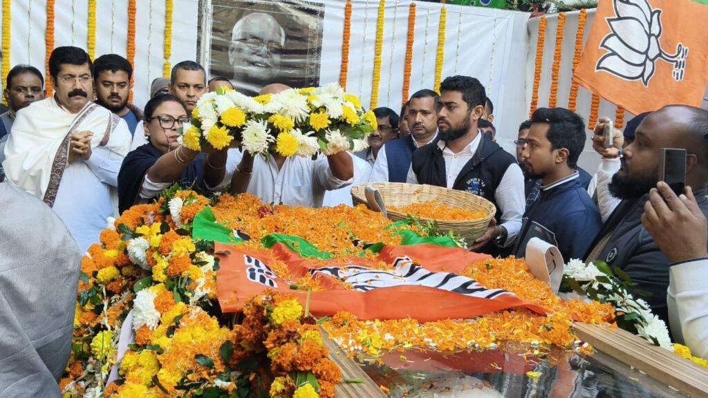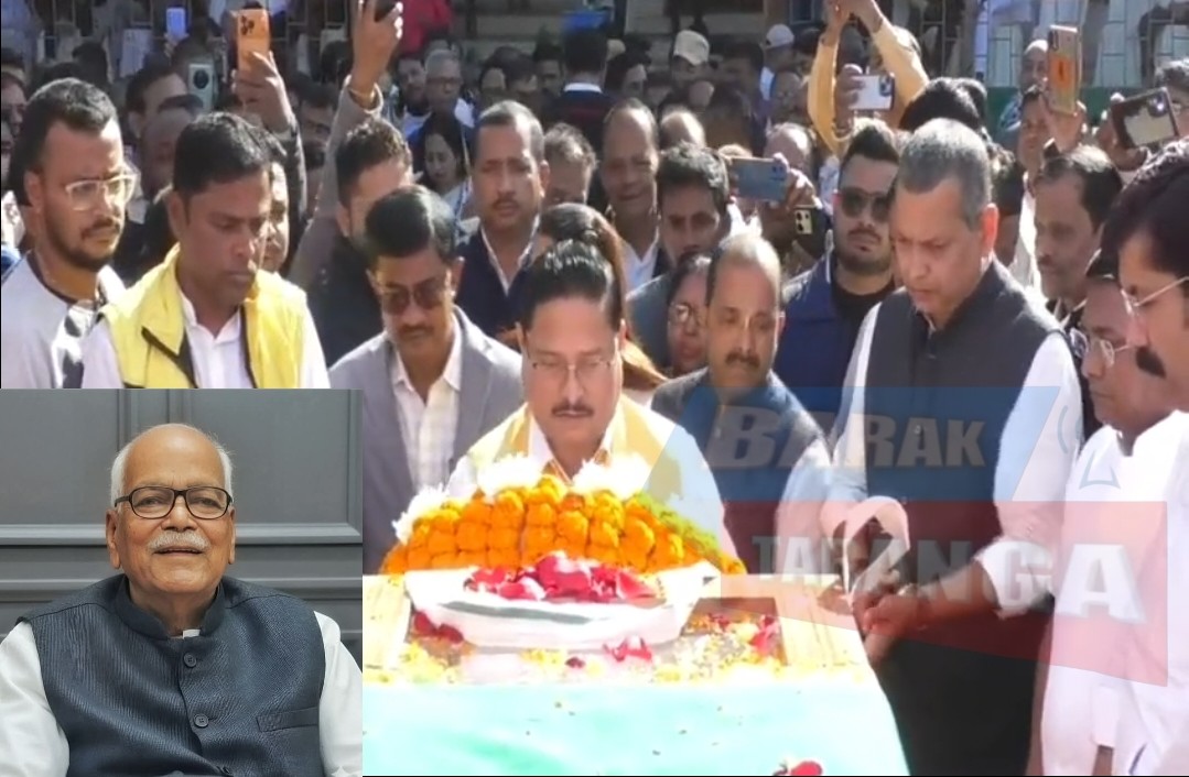 বরাক তরঙ্গ, ৮ জানুয়ারি : বিজেপির উত্তর-পূর্বাঞ্চলের অন্যতম স্থপতি ও প্রাক্তন কেন্দ্রীয় মন্ত্রী কবীন্দ্র পুরকায়স্থ বৃহস্পতিবার পঞ্চভূতে বিলীন হলেন। শিলচর শ্মশানঘাটে রাষ্ট্রীয় মর্যাদায় তাঁর শেষকৃত্য সম্পন্ন হয়। বিকেল সাড়ে তিনটা নাগাদ একমাত্র পুত্র, সাংসদ কণাদ পুরকায়স্থ মুখাগ্নি করেন। প্রয়াত নেতাকে শেষ শ্রদ্ধা জানাতে এ দিন শিলচরে উপস্থিত হন বিজেপির প্রদেশ সভাপতি দিলীপ শইকিয়া। তিনি ডিএসএ মাঠে কবীন্দ্র পুরকায়স্থের নশ্বরদেহে শ্রদ্ধাঞ্জলি অর্পণ করেন। এর আগে সকালে তাঁর মরদেহ শিলচরের নতুন পট্টিস্থিত নিজ বাসভবনে নিয়ে যাওয়া হয়। সেখানে ধর্মীয় রীতি-নীতি সম্পন্ন করার পর দেহ ইটখোলা দলীয় জেলা কার্যালয়ে আনা হয়, সেখানে দলীয় নেতা-কর্মীরা শেষ শ্রদ্ধা জানান।