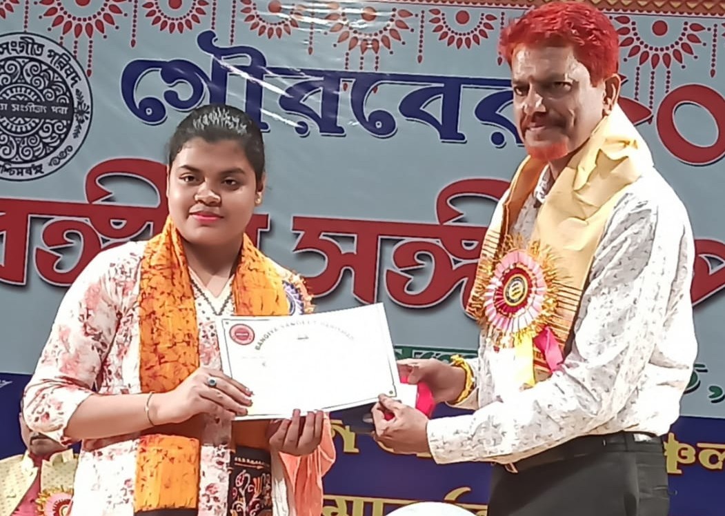 বঙ্গীয় সঙ্গীত পরিষদ কর্তৃক আয়োজিত নজরুল গীতির বিভাকর (পঞ্চম বর্ষ) পরীক্ষায় পিয়ালী ভট্টাচার্য এই পদক লাভ করে কলকাতার বঙ্গীয় সঙ্গীত পরিষদের ২০২৩-২৪ শিক্ষাবর্ষে সর্ব ভারতীয় পর্যায়ে আয়োজিত এই পরীক্ষায় দ্বিতীয় সর্বোচ্চ নম্বর প্রাপক হিসেবে এই কৃতিত্ব অর্জন করে এমর্মে গত রবিবার শিলচর বঙ্গভবনে পরিষদের ৪৮ তম বার্ষিক সমাবর্তন উপলক্ষে বিভিন্ন শিক্ষার্থীর সঙ্গে পিয়ালীকে ও আনুষ্ঠানিক ভাবে সম্মাননা প্রদান করা হয়। পরিষদের পক্ষ থেকে রৌপ্য পদক, এক কালীন আর্থিক বৃত্তি সহ নজরুল গীতিতে পঞ্চম বর্ষ সঙ্গীত বিভাকর উপাধি প্রদান করা হয়। আয়োজকদের পক্ষ থেকে পুরষ্কার তুলে দেন প্রশাসনিক আধিকারিক বিক্রমজিৎ চক্রবর্তী। প্রসঙ্গত হাইলাকান্দি শহরের একাদশ শহিদ সরণির গৌতম রায় লেনের বাসিন্দা শিক্ষক তথা সংস্কার ভারতীর হাইলাকান্দি জেলা শাখার সভাপতি তথা বরাক উপত্যকা বঙ্গ সাহিত্য ও সংস্কৃতি সম্মেলনের কেন্দ্রীয় সাংস্কৃতিক সম্পাদক পিনাক পাণি ভট্টাচার্য ও সমাজকর্মী রূপালি ভট্টাচার্যের কন্যা পিয়ালী বিশিষ্ট সঙ্গীত শিক্ষিকা মলিনা চৌধুরীর তত্বাবধানে কণ্ঠ সঙ্গীতের তালিম নিচ্ছেন। এছাড়াও হিন্দুস্থানী শাস্ত্রীয় সঙ্গীতে বিশারদ উপাধি প্রাপ্তা পিয়ালী বর্তমানে নজরুল গীতি ও রবীন্দ্র সঙ্গীত সহ বিভিন্ন পর্যায়ের গানের চর্চা করে চলেছেন। পিয়ালী হাইলাকান্দির গীতায়ন সঙ্গীত বিদ্যালয়ের অধীনে নজরুল গীতির পরীক্ষায় বসেছিলেন। তার এই সাফল্যে গীতায়নের অধ্যক্ষা সুদীপা চৌধুরী, সম্পাদক দেবজিত দাস এবং প্রতিষ্ঠানের সঙ্গীত শিক্ষিকা মলিনা চৌধুরী সহ অন্যান্য শিক্ষার্থী ও সংস্কৃতি মহল সন্তোষ প্রকাশ করে তাঁকে অভিনন্দন জানিয়েছে। এছাড়াও সংস্কার ভারতীর হাইলাকান্দি শাখার পক্ষ থেকে ও পিয়ালী ভট্টাচার্যকে অভিনন্দন জানান সম্পাদক ড. অভিজিৎ মিত্র সহ শংকর চৌধুরী সহ অন্যান্যরা।