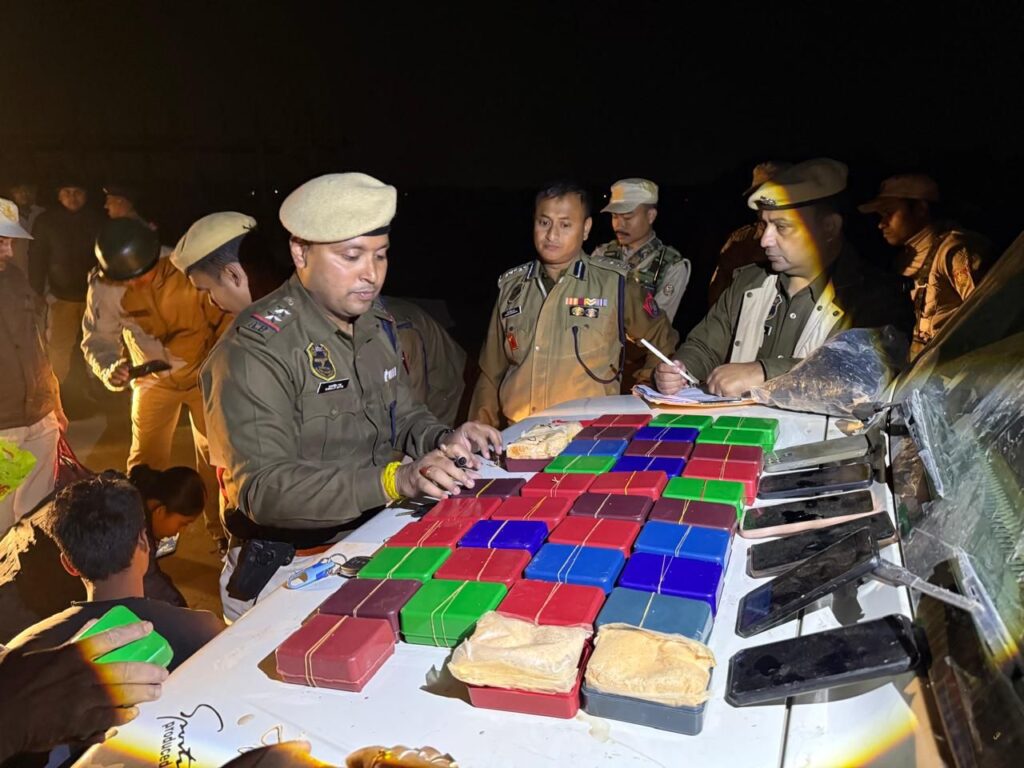 অভিযান চলাকালীন একটি বলেরো পিকআপ (AS10 BC 0616) এবং একটি হুন্ডাই ভেন্যু (AS10 J 0676) আটক করা হয়। তল্লাশি চালিয়ে বোলেরো পিকআপের গোপন চেম্বার থেকে মোট ৪০টি সাবান কেসে রাখা সন্দেহজনক হেরোইন উদ্ধার করা হয়, যার মোট ওজন প্রায় ৪০৬ গ্রাম।পুলিশ সূত্রে এর বাজার মূল্য দুই কোটি টাকা হবে।