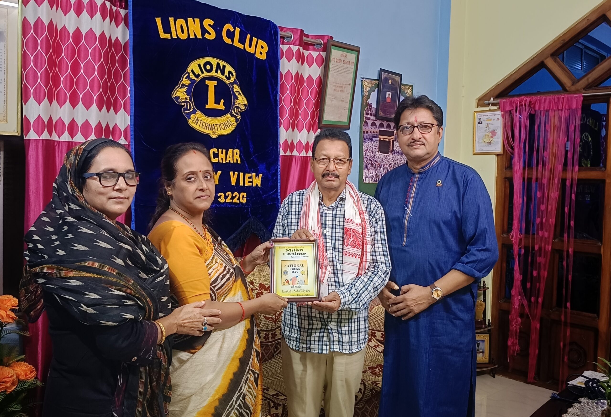 বরাক তরঙ্গ, ১৮ নভেম্বর : জাতীয় প্রেস দিবস উপলক্ষে লায়ন্স ক্লাব অব শিলচর ভ্যালি ভিউ, বরাক উপত্যকার প্রবীণ সাংবাদিক তথা দৈনিক সাময়িক প্রসঙ্গ পত্রিকার জ্যেষ্ঠ সহকারি সম্পাদক মিলন উদ্দিন লস্করকে সাংবাদিকতার ক্ষেত্রে উল্লেখযোগ্য অবদানের স্বীকৃতিস্বরূপ সম্মানিত করল। ক্লাবের সভানেত্রী বান্দিতা ত্রিবেদী রায়, মিনারা লস্কর, সাহিন আখতার মজুমদার এবং সঞ্জীব রায় সাংবাদিক লস্করের শিলচর মালুগ্রামের বাসভবনে গিয়ে উত্তরীয় ও স্মারক তুলে দিয়ে সম্মাননা প্রদান করেন।
