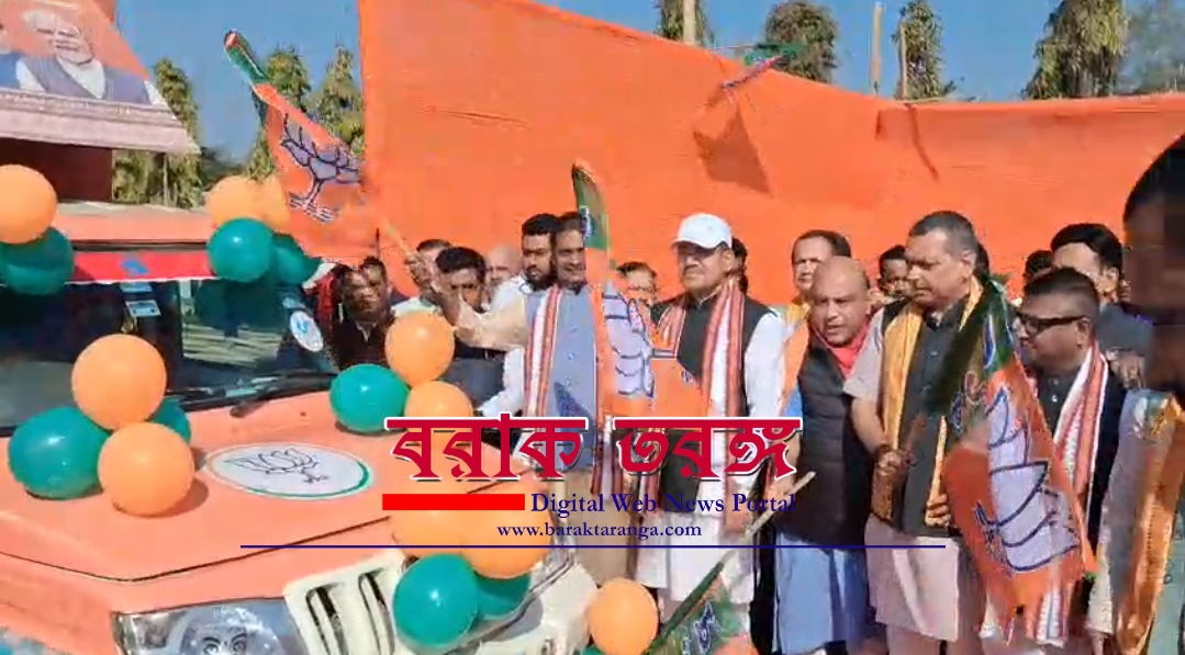বরাক তরঙ্গ, ২৫ জানুয়ারি : ২০২৬ সালের বিধানসভা নির্বাচনকে সামনে রেখে ভারতীয় জনতা পার্টি বরাক উপত্যকায় ব্যাপক প্রচার অভিযান শুরু করেছে। রবিবার সকাল ৮টা ৩০ মিনিটে শিলচর টাউন ক্লাব ময়দানে রাজ্যের মন্ত্রী কৌশিক রায় সহ বিজেপির বিধায়ক ও রাজ্যসভা সাংসদ কণাদ পুরকায়স্থ ৯টি ভিডিও ভ্যানের আনুষ্ঠানিক ফ্ল্যাগ অফ করেন। মোট ১০৩টি ভিডিও ভ্যানের মধ্যে ৯৪টি গুয়াহাটি থেকে রাজ্য বিজেপি পাঠিয়েছে, যা গুয়াহাটিতে মুখ্যমন্ত্রী ড. হিমন্ত বিশ্ব শর্মা ও রাজ্য নেতৃত্ব ফ্ল্যাগ অফ করেন। এই ভিডিও ভ্যানগুলো প্রত্যেক বিধানসভা কেন্দ্রের বাজার-হাটসহ বিভিন্ন স্থানে প্রচারের জন্য ব্যবহার করা হবে।