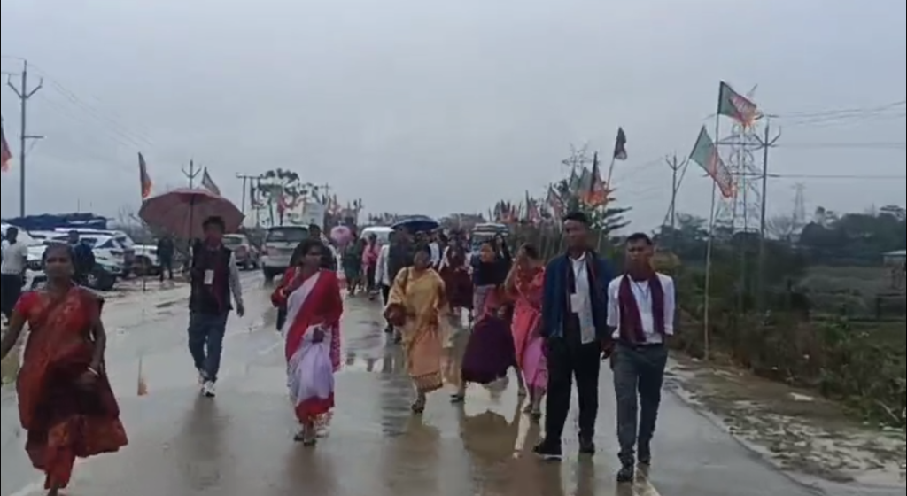 বৃষ্টি উপেক্ষা করে শিলচর বুধুরাইল বাইপাসে প্রধানমন্ত্রীর জনসভায় লক্ষাধিক মানুষের সমাগম