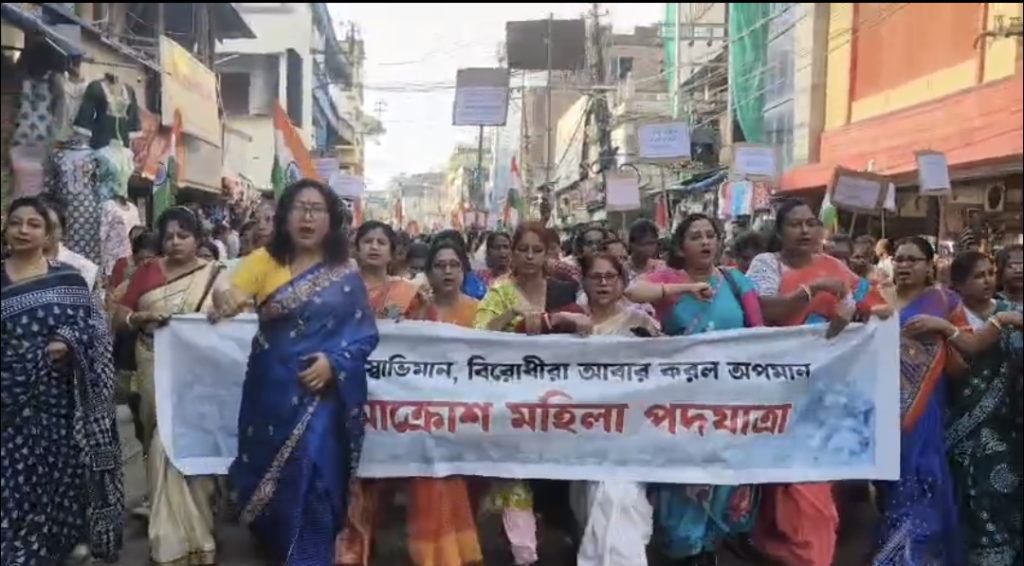 নরসিংটোলা ময়দান থেকে শুরু হওয়া এই পদযাত্রা শহরের রাঙ্গিরখাড়ি পয়েন্ট পর্যন্ত অগ্রসর হয়। পদযাত্রাজুড়ে অংশগ্রহণকারী মহিলারা বিভিন্ন স্লোগানের মাধ্যমে কংগ্রেসকে কড়া ভাষায় আক্রমণ করেন এবং দলটির ‘মহিলা বিরোধী মনোভাব’-এর তীব্র সমালোচনা করেন।