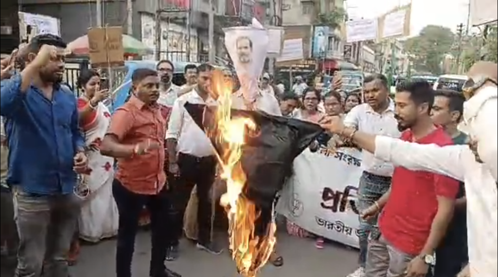 বরাক তরঙ্গ, ১৮ এপ্রিল : শিলচরে মহিলা সংরক্ষণ বিলকে কেন্দ্র করে উত্তাল রাজনৈতিক পরিবেশ। বিলের বিরোধিতাকে নারীর সম্মানের উপর আঘাত হিসেবে উল্লেখ করে কংগ্রেসের বিরুদ্ধে প্রতিবাদ কর্মসূচি পালন করল ভারতীয় জনতা পার্টির কাছাড় জেলা মহিলা মোর্চা। শনিবার বিজেপি কাছাড় জেলা মহিলা মোর্চার উদ্যোগে আয়োজিত এই কর্মসূচিতে একটি প্রতিবাদ মিছিল জেলা বিজেপি কার্যালয় থেকে বের হয়ে শহরের বিভিন্ন পথ পরিক্রমা করে ক্ষুদিরাম মূর্তির সামনে এসে শেষ হয়। সেখানে বিজেপি কর্মীরা কংগ্রেস নেতা রাহুল গান্ধীর কুশপুতুল দাহ করেন এবং কংগ্রেস ও তৃণমূল কংগ্রেসের বিরুদ্ধে স্লোগান তোলেন।