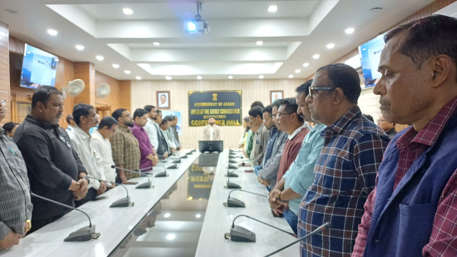 বরাক তরঙ্গ, ১০ ডিসেম্বর : সমগ্র রাজ্যের সঙ্গে শ্রীভূমি জেলায়ও শহিদ দিবস উদযাপন করা হয়েছে। বুধবার শ্রীভূমি জেলা আয়ুক্ত কার্যালয়ের সভাকক্ষে জেলা আয়ুক্ত প্রদীপকুমার দ্বিবেদীর উপস্থিতিতে আসাম আন্দোলনের ৮৬০ জন শহিদের স্মৃতিতে দুই মিনিট নিরবতা পালন করা হয়। এতে অতিরিক্ত জেলা আয়ুক্ত নিলোৎপল পাঠক, অতিরিক্ত জেলা আয়ুক্ত এল খিংতে, অতিরিক্ত জেলা আয়ুক্ত জয়ন্ত বরা, সহকারী আয়ুক্ত অন্বেষা খেরসা, সহকারী আয়ুক্ত পূজা ডাওলাগাপু, সহকারী আয়ুক্ত বিপ্লব সেংগুং, সহকারী আয়ুক্ত আলমগির লস্কর, স্বাস্থ্য বিভাগের যুগ্ম সঞ্চালক মতীন্দ্র সুত্রধর, ডিআইপিআরও ইফতিখার জামান, ডিসি অফিসের প্রশাসনিক আধিকারিক হিরন্ময় রায় সহ অন্যান্য বিভাগীয় আধিকারিক এবং কর্মচারীদের উপস্থিত ছিলেন। পাশাপাশি, সুধাকণ্ঠ ড. ভূপেন হাজারিকার কালজয়ী গান “শহিদ প্রণামো তোমাক” পরিবেশন করে শ্রদ্ধার্ঘ অর্পণ করা হয়।