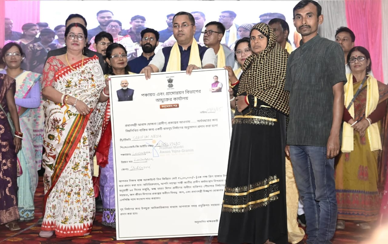 অনুষ্ঠানে পাথারকান্দি ব্লকের ২,৭০৬ জন ও লোয়ারপোয়া ব্লকের ১,৪৯০ জন, অর্থাৎ মোট ৪,২২৬ জন হিতাধিকারীর হাতে আবাস যোজনার অনুমোদনপত্র তুলে দেন মন্ত্রী কৃষ্ণেন্দু পাল। হিতাধিকারীদের হাতে চিঠি তুলে দেওয়ার সময় প্রেক্ষাগৃহ জুড়ে বারবার করতালির ধ্বনি ধ্বনিত হয়।মন্ত্রী কৃষ্ণেন্দু পাল তাঁর বক্তৃতায় বলেন, আজ গোটা অসমে ৩ লক্ষ ২৫ হাজার ২৩৮ জন হিতাধিকারীর হাতে আবাস যোজনার অনুমোদনপত্র প্রদান করছেন মুখ্যমন্ত্রী ড. হিমন্ত বিশ্বশর্মা। সবার জন্য ঘর—এই স্বপ্ন পূরণে মুখ্যমন্ত্রীর এই বিশাল উদ্যোগকে আমরা কুর্নিশ জানাই।তিনি জানান, প্রধানমন্ত্রী নরেন্দ্র মোদির নেতৃত্বে দেশজুড়ে আবাসন সুবিধা নিশ্চিত করতে যে পরিকল্পনা নেওয়া হয়েছে, তার সুফল আজ সাধারণ মানুষ পাচ্ছেন। মন্ত্রী আরও স্পষ্ট করেন যে এই প্রকল্পে মধ্যস্বত্বভোগীদের কোনো স্থান নেই এবং কোনো ধরনের দুর্নীতি বরদাস্ত করা হবে না। প্রকৃত হিতাধিকারীকে যেন বঞ্চিত না হতে হয়, সে বিষয়ে সকল কর্মকর্তা ও কর্মচারীদের সতর্ক থাকার আহ্বান জানান তিনি।