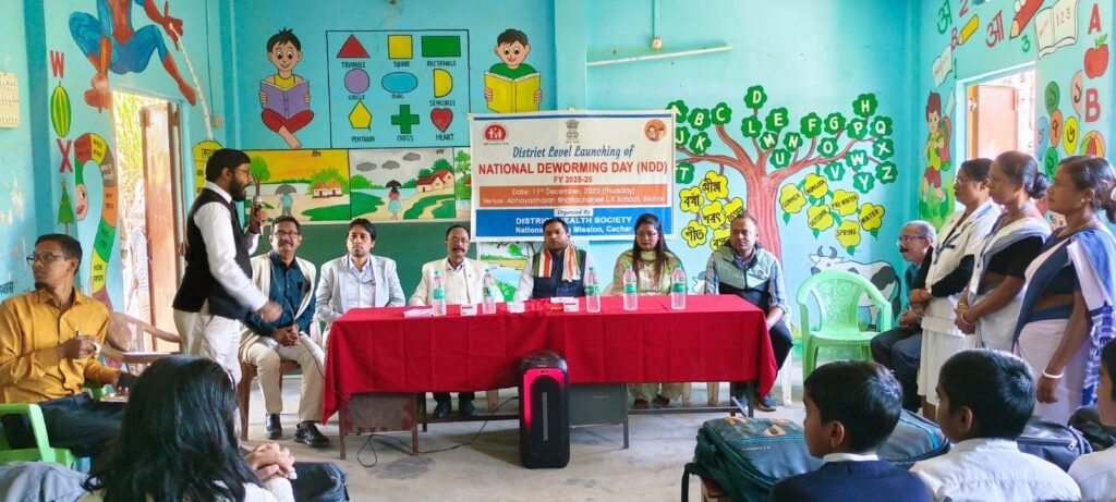 বরাক তরঙ্গ, ১১ ডিসেম্বর : “সুস্থ শিশুই শক্তিশালী দেশের ভিত্তি”—উদ্বোধনী অনুষ্ঠানে এ কথা উল্লেখ করেন জেলা আয়ুক্ত মৃদুল যাদব। বৃহস্পতিবার শিলচরের অভয়াচরণ ভট্টাচার্য নিম্ন প্রাথমিক বিদ্যালয়ে অনুষ্ঠিত জেলা পর্যায়ের ন্যাশনাল ডিওয়ার্মিং ডে (এনডিডি)-র সূচনাপর্বে তিনি শিশুদের স্বাস্থ্যকর অভ্যাস, পরিচ্ছন্নতা ও সুষম পুষ্টি সম্পর্কে সচেতনতামূলক শিক্ষা দেওয়ার ওপর জোর দেন। তিনি বলেন, ব্যক্তিগত পরিচ্ছন্নতা ও সঠিক খাদ্যাভ্যাস বজায় রাখা শিশুদের সার্বিক বৃদ্ধি, রোগ প্রতিরোধ ক্ষমতা এবং ভবিষ্যৎ সুস্থতার জন্য অত্যন্ত জরুরি।