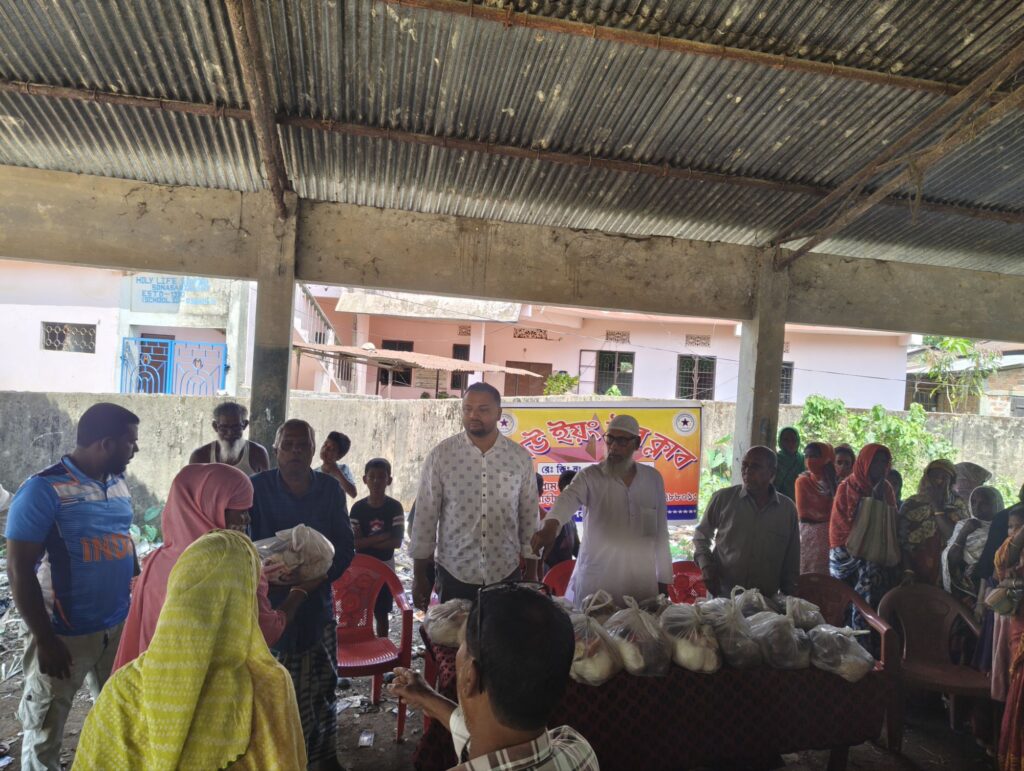 বরাক তরঙ্গ, ১৯ মার্চ : দুই শতাধিক অসহায় লোকের মধ্যে ঈদের সামগ্রী বিতরণ করল সোনাবাড়িঘাটের অগ্রণী বেসরকারি সংস্থা নিউ ইয়ং স্টার ক্লাব। বৃহস্পতিবার এক সংক্ষিপ্ত অনুষ্ঠানের মাধ্যমে কিটগুলো বিতরণ করা হয়। বক্তব্য রাখেন ক্লাবে উপদেষ্টা আজিজুর রহমান চৌধুরী। এ ছাড়া উপস্থিত ছিলেন সমাজকর্মী আলম মজুম ও জাবেদ চৌধুরী, ক্লাবের উপদেষ্টা সমসুর উদ্দিন আহমদ, আশু চৌধুরী, সম্পাদক নাজিম উদ্দিন, সভাপতি জামাল উদ্দিন, কার্যকরী সভাপতি আবিদুর রহমান, কোষাধ্যক্ষ আনসার মিয়া, সদস্য ইকবাল হোসেন পিন্টু প্রমুখ। সামগ্রী গুলোর মধ্যে ছিল মটর, তেল, ময়দা, পিঁয়াজ, লবণ, চিনি ইত্যাদি।