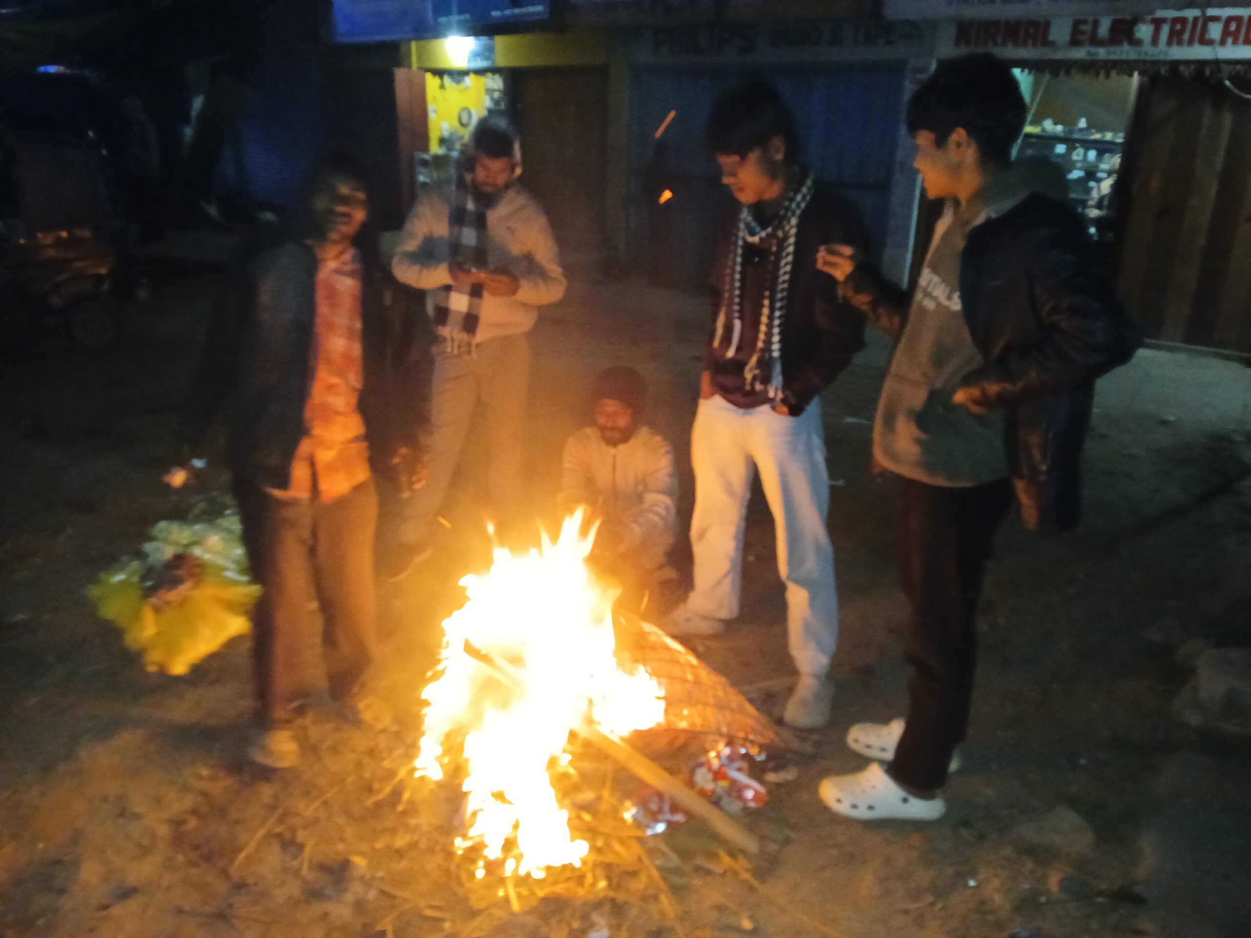 এমন পরিস্থিতিতে শীতের রাতে পথের ধারে আগুন জ্বালিয়ে উষ্ণতা খুঁজতে দেখা যাচ্ছে শ্রীভূমি শহরের বিভিন্ন প্রান্তে। শহরের ব্যস্ত বাজার এলাকা, বিশাল মেগামার্ট সংলগ্ন মোড়, বাসস্ট্যান্ড, গুরুত্বপূর্ণ সড়ক ও অলিগলিতে সন্ধ্যার পর থেকেই জড়ো হচ্ছেন স্থানীয় বাসিন্দা, শ্রমজীবী মানুষ, পথচারী ও যুবকরা। খড়কুটো, শুকনো কাঠ, পরিত্যক্ত কাগজ বা অন্যান্য সামগ্রী জ্বালিয়ে আগুন পোহাচ্ছেন তাঁরা। আগুনের চারপাশে দাঁড়িয়ে কিংবা বসে শীতের তীব্রতা থেকে সাময়িক স্বস্তি খুঁজে নিচ্ছেন অনেকেই। কেউ সারাদিনের কাজ শেষে বাড়ি ফেরার আগে কিছুটা উষ্ণতা নিতে থামছেন, কেউ আবার শহরে ব্যক্তিগত কাজে এসে শীতের হাত থেকে রক্ষা পেতে আগুনের ধারে দাঁড়াচ্ছেন। আবার এমন অনেক মানুষও আছেন, যাঁরা কাজের তাগিদে বা জীবিকার কারণে সারারাত বাইরে কাটাতে বাধ্য হচ্ছেন তাঁদের কাছে এই আগুনই একমাত্র আশ্রয়। এমন দৃশ্য শুধু শহরেই সীমাবদ্ধ নয়। শ্রীভূমি জেলার বিভিন্ন গ্রামাঞ্চলেও একই ছবি ধরা পড়ছে। গ্রামের হাট-বাজার, রাস্তার ধারে কিংবা খোলা জায়গায় আগুন জ্বালিয়ে শীত মোকাবিলা করছেন মানুষজন। আগুন ঘিরে তৈরি হচ্ছে ছোট ছোট আড্ডা—দিনের নানা ঘটনা, সুখ-দুঃখের গল্প ভাগ করে নিচ্ছেন তাঁরা। শীতের রাতে এই আড্ডাগুলো যেন কিছুটা হলেও ভুলিয়ে দিচ্ছে কনকনে ঠান্ডার যন্ত্রণা।তবে শীতের এই কঠিন সময়ে সবচেয়ে বেশি সমস্যায় পড়ছেন দিনমজুর, রিকশাচালক, পথশ্রমিক ও গৃহহীন মানুষজন। পর্যাপ্ত শীতবস্ত্র ও আশ্রয়ের অভাবে তাঁদের অনেককেই রাত কাটাতে হচ্ছে খোলা আকাশের নিচে। ফলে আগুনই হয়ে উঠেছে তাঁদের কাছে একমাত্র ভরসা।