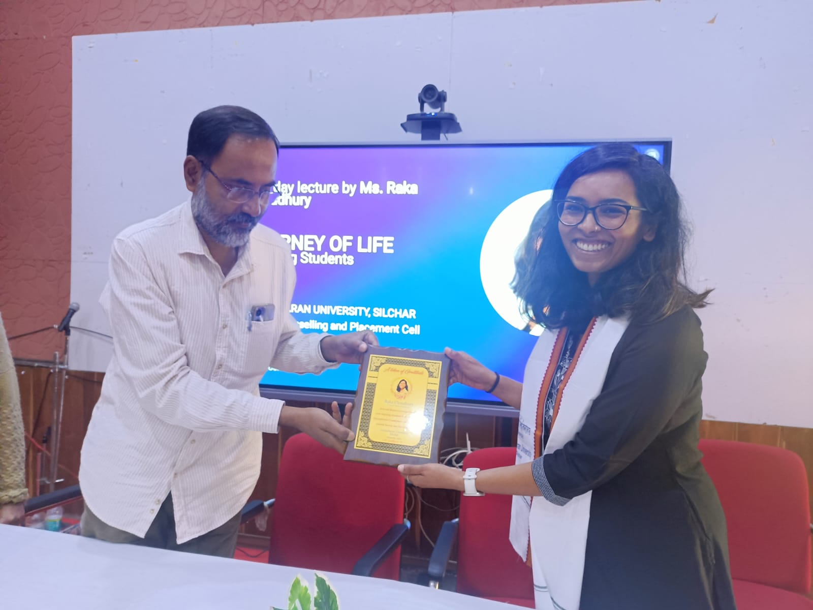 বরাক তরঙ্গ, ২৪ ডিসেম্বর : গুরুচরণ বিশ্ববিদ্যালয়ের ক্যারিয়ার কাউন্সেলিং ও প্লেসমেন্ট সেলের উদ্যোগে মঙ্গলবার বিশ্ববিদ্যালয়ের সভাকক্ষে ‘লাইফ পাথ’ শীর্ষক এক অনুপ্রেরণামূলক কর্মসূচির আয়োজন করা হয়। উক্ত অনুষ্ঠানের রিসোর্স পার্সন হিসেবে উপস্থিত ছিলেন ড. রাকা চৌধুরী গুরুচরণ মহাবিদ্যালয় (বর্তমানে গুরুচরণ বিশ্ববিদ্যালয়)-এর উদ্ভিদবিদ্যা বিভাগের প্রাক্তন ছাত্রী। বর্তমানে তিনি নেদারল্যান্ডসের ড্যানোন নিউট্রিশিয়া-তে একজন ক্লিনিক্যাল স্টাডি রিসার্চার হিসেবে কর্মরত।