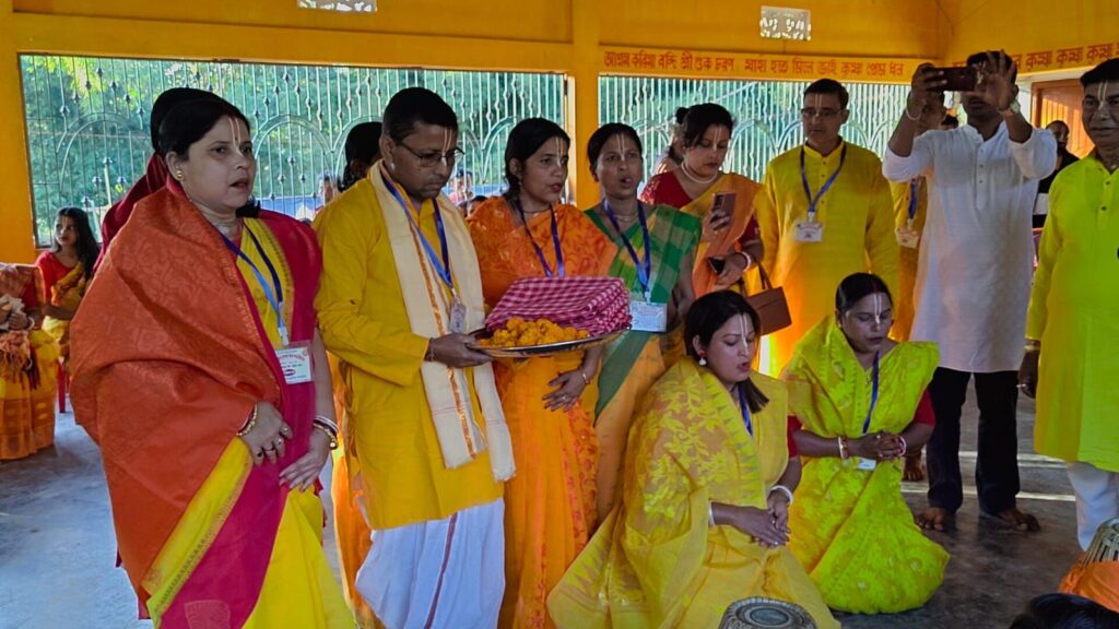 বরাক তরঙ্গ, ২৭ ডিসেম্বর : বাজারিছড়া রাধারমণ সেবক সংঘের উদ্যোগে ধুমধাম ও ধর্মীয় ভাবগাম্ভীর্যের মধ্য দিয়ে উদযাপিত হচ্ছে ১০৮ প্রভুপাদ শ্রীশ্রী রাধারমণ গোস্বামী জিউর পুণ্য স্মরণ উৎসব। প্রতি বছরের ন্যায় এ বছরও দু’দিনব্যাপী নানা মাঙ্গলিক ও ধর্মীয় অনুষ্ঠানের মধ্য দিয়ে একাদশতম এই মহতী উৎসব পালন করছেন আয়োজকরা।উৎসবের প্রথম দিন শনিবার দুপুর প্রায় দু’টা নাগাদ বাজারিছড়া রাধারমণ সেবক সংঘের ব্যবস্থাপনায় এক সংবর্ধনা সভার আয়োজন করা হয়। সভায় স্থানীয় বিভিন্ন আশ্রমের কর্মকর্তা ও বিশিষ্ট মৃদঙ্গবাদকদের যথাযথ সম্মাননা প্রদান করা হয়। এই সংবর্ধনা সভায় সভাপতিত্ব করেন বাজারিছড়া রাধারমণ সেবক সংঘের সভাপতি সূচরিত পাল।এদিন যাঁদের সংবর্ধিত করা হয়, তাঁদের মধ্যে উল্লেখযোগ্য হলেন বাজারিছড়া অখণ্ড মণ্ডলীর সভাপতি দিলীপ পোদ্দার, বাজারিছড়া সৎসঙ্গ উপাসনা কেন্দ্রের সভাপতি ও সম্পাদক বিশ্বজিৎ সিংহ ও বিশু দেব, শ্রীনগর রাধারমণ উপাসনা কমিটির সভাপতি ও সম্পাদক হিমাংশু পাল ও নিকুঞ্জ পাল, বাজারিছড়া রাধারমণ সেবক সংঘের প্রাক্তন সভাপতি দিলীপ নাগ, রাঙ্গামাটি রাধারমণ উপাসনা কমিটির সভাপতি গোকুল মালাকার, বাজারিছড়া ভারত সেবাশ্রমের সভাপতি উত্তম পাল, সম্পাদক সুভাষ দে, বাপ্পা চক্রবর্তী প্রমুখ।