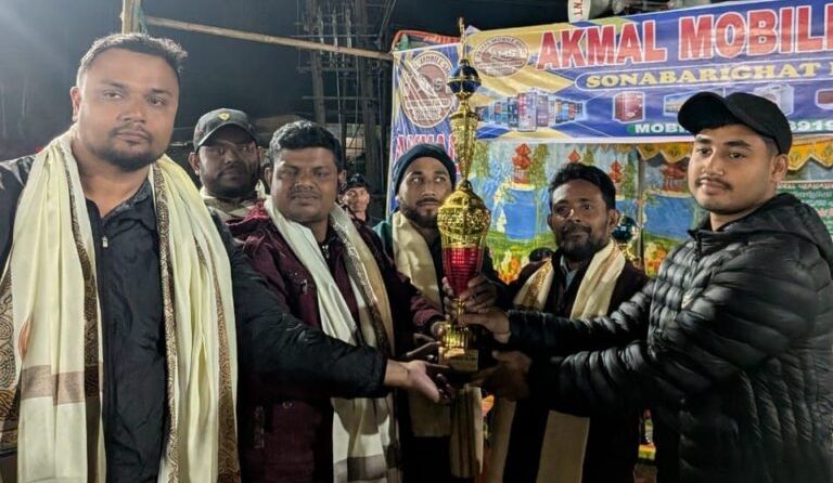 বরাক তরঙ্গ, ১৯ ডিসেম্বর : ডেনিয়েল লাতামের হ্যাটট্রিক গোলে সোনাবাড়িঘাটে শুরু হল নাইট ফুটবলের খেতাব অর্জন করল নতুন রামনগর এফসি। শুক্রবার ওয়ার্ক ফর গুড এনজিও নক-আউট সিক্স-এ সাইড নাইট ফুটবল টুর্নামেন্টে জিরিবামের ইউনাইটেড ব্রাদার্সকে হারিয়ে চ্যাম্পিয়ন হল নতুন রামনগর এফসি।সোনাবাড়িঘাট ওএনজিসি সংলগ্ন মাঠে ৪-১ গোলে জয়ী হয় নতুন রামনগর। প্রথমার্ধ্বে হাড্ডাহাড্ডি লড়াই করে জিরিবাম। এতে গোল শূন্য থেকে যায় প্রথমার্ধ্ব। দ্বিতীয়ার্ধে গোলের খাতা খুলেন ফুলমুন। তিনি ২৫ মিনিটে গোল করেন। এরপর টানা তিনটি গোল করে হ্যাটট্রিককরেন ডেনিয়েল লাতাম (২৮, ৩২,৩৫)। জিরিবামের একমাত্র গোলটি করেন ৩৭ মিনিটে জমরুল হক।