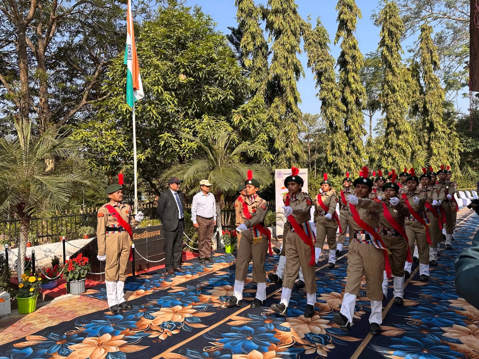 বরাক তরঙ্গ, ২৬ জানুয়ারি : দেশাত্মবোধ, ঐক্য ও শৈক্ষিক সাফল্যের আবহে ৭৭তম প্রজাতন্ত্র দিবস উদযাপিত হল আসাম বিশ্ববিদ্যালয়ে। রাজা রামমোহন রায় প্রশাসনিক ভবনের সামনে জাতীয় পতাকা উত্তোলনের মাধ্যমে অনুষ্ঠানের সূচনা করেন উপাচার্য অধ্যাপক রাজীবমোহন পন্থ। এরপর সমবেত কণ্ঠে জাতীয় সঙ্গীত পরিবেশন করা হয়। অনুষ্ঠানে বিশ্ববিদ্যালয়ের এনসিসি ক্যাডেট ও নিরাপত্তা কর্মীদের পক্ষ থেকে উপাচার্যকে গার্ড অব অনার প্রদান করা হয়।