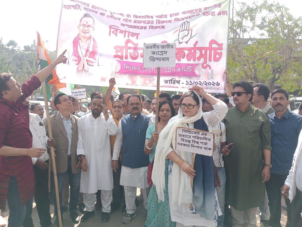 বরাক তরঙ্গ, ১১ ফেব্রুয়ারি : অসম প্ৰদেশ কংগ্ৰেস কমিটির সভাপতি ও সাংসদ গৌরব গগৈর বিরুদ্ধে মুখ্যমন্ত্রী হিমন্ত বিশ্ব শর্মার বিদ্বেষমূলক বক্তব্য ও অপপ্রচারের অভিযোগ তুলে বুধবার শিলচরে বিশাল প্রতিবাদী মিছিল সংগঠিত করে শিলচর জেলা কংগ্রেস।
