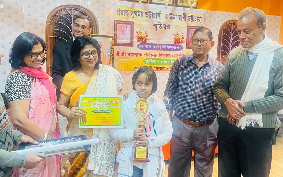 বরাক তরঙ্গ, ৯ ফেব্রুয়ারি : শ্রীশ্রীরামকৃষ্ণ পাঠচক্র শিলচর (সেন্ট্রাল) কমিটির ৪৪তম বর্ষপূর্তি অনুষ্ঠান সাংস্কৃতিক কর্মসূচি, পুরস্কার বিতরণ ও সংবর্ধনার মধ্য দিয়ে সম্পন্ন হয়েছে। সংস্থার প্রার্থনা গৃহে রবিবার সন্ধ্যায় স্বামীজির ১৬৪তম জন্মদিবসকে কেন্দ্র করে আয়োজিত এই অনুষ্ঠানে ভক্তি, সঙ্গীত ও প্রতিযোগিতার মিশেলে উপস্থিতরা মুগ্ধ হয়েছেন। সন্ধ্যা ৫-৩০ মিনিটে প্রদীপ প্রজ্বলন করে অনুষ্ঠানের সূচনা করেন সংস্থার সভাপতি চম্পালাল রায়। সহযোগিতায় ছিলেন বানপ্রস্থ মঙ্গলমের সভাপতি নীহারেন্দু তারণ, সহ-সভাপতি গোপালচন্দ্র ভট্টাচার্য ও বীরেন্দ্রকুমার দাসসহ আমন্ত্রিত অতিথিবৃন্দ। দিব্যত্রয়ী প্রণামের পর সদস্যরা ‘ভাবসাগর তারণ’ সঙ্গীত পরিবেশন করেন। এরপর ঠাকুর, মা ও স্বামীজির গান যথাক্রমে উপস্থাপন করেন বীরেন্দ্রকুমার দাস, যুথিকা দত্ত বনিক ও বীরেশ নাথ। কাছোড় মহাবিদ্যালয়ের অধ্যক্ষ অপ্রতিম নাগ কচিকাঁচাদের নিয়ে স্বামীজিকেন্দ্রিক এক মনোজ্ঞ আলোচনা উপস্থাপন করেন। ১০ বছর পূর্ণ সদস্য অমিত বণিক, সৌমেন রায় চৌধুরী, দীপক কান্তি দত্ত বিশ্বাস ও গোপাল কর্মকারকে সংস্থার পক্ষ থেকে সম্মানিত করা হয়।