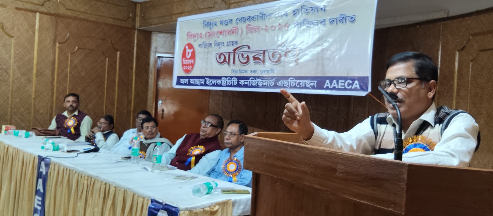 বরাক তরঙ্গ, ৮ ডিসেম্বর : বিদ্যুৎ সংশোধনী বিল, ২০২৫ এর বিরুদ্ধে রাজ্যজুড়ে তীব্র গণ আন্দোলন গড়ে তোলার অঙ্গীকার নিয়ে অনুষ্ঠিত হল অল আসাম ইলেকট্রিসিটি কনজুমার্স অ্যাসোসিয়েশনের রাজ্য ভিত্তিক বিদ্যুৎ গ্রাহক অভিবর্তন। সোমবার আহ্বানে গুয়াহাটির বিষ্ণু নির্মলা ভবনে শ্রমিক সংগঠন এআইইউটিইউসি-র সভাপতি অজিত আচার্যের সভাপতিত্বে পরিচালিত সভার শুরুতে অভিবর্তনের মূল প্রস্তাব উত্থাপন করেন কনজুমার্স অ্যাসোসিয়েশনের রাজ্য কমিটির অন্যতম সদস্য ইদ্রিস আলি। মূল প্রস্তাবের সমর্থনে প্রথমে বক্তব্য রাখেন কনজুমার্স অ্যাসোসিয়েশন এর রাজ্য কমিটির অন্যতম সদস্য অনুপম চুতিয়া। অভিবর্তনে বিশিষ্ট বক্তা হিসেবে একে একে বক্তব্য রাখেন অল আসাম ইলেকট্রিসিটি কনজুমার্স অ্যাসোসিয়েশনের উপদেষ্টা বিমল দাস, কোর্ডিনেশন কমিটি অব ইলেকট্রিসিটি অ্যান্ম্পোয়িস, ইঞ্জিনিয়ার্স, পেনশনার্স এর প্রাক্তন সভাপতি প্রমোদ চন্দ্র দাস, অ্যাসোসিয়েশন অব ইঞ্জিনিয়ার্স এর সভাপতি বিক্রমাদিত্য দাস, বিশিষ্ট শ্রমিক নেতা দীপক রঞ্জন সাহা, অল আসাম ইলেকট্রিসিটি কনজুমার্স অ্যাসোসিয়েশনের অন্যতম আহ্বায়ক অজয় আচার্য প্রমুখ।