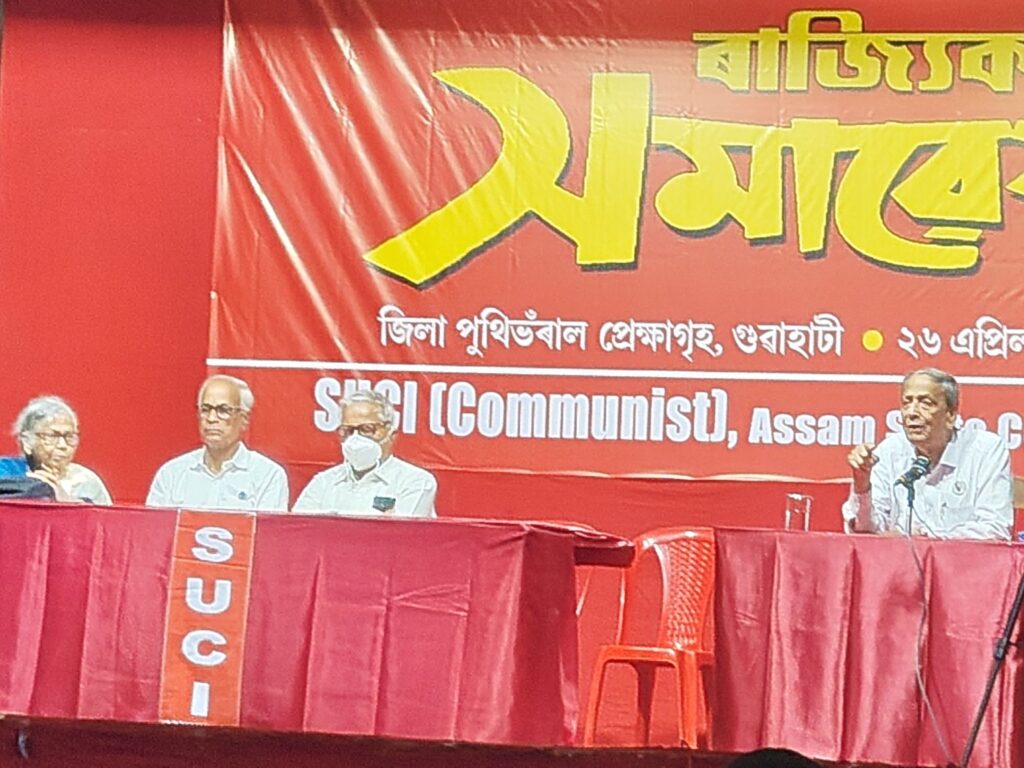 বরাক তরঙ্গ, ২৬ এপ্রিল : অসমের জনগণকে একে অপরের বিরুদ্ধে দাঁড় করানোর চক্রান্তের বিরুদ্ধে সরব হতে হবে। অসমের মানুষকে “শত্রু” হিসেবে চিহ্নিত করার অপচেষ্টা প্রতিহত করতে হবে। রবিবার গুয়াহাটি জেলা গ্রন্থাগারের প্রেক্ষাগৃহে আয়োজিত এসইউসিআই (কমিউনিস্ট) দলের ৭৮তম প্রতিষ্ঠা দিবস উপলক্ষে রাজ্যভিত্তিক সমাবেশে এই আহ্বান জানান পলিটব্যুরো সদস্য তথা জননেতা অসিত ভট্টাচার্য। অসম রাজ্য কমিটির সম্পাদক চন্দ্রলেখা দাসের সভাপতিত্ব সমাবেশে তিনি বলেন, অসমিয়া, বাঙালি ও বিভিন্ন জনজাতির মানুষকে ঐক্যবদ্ধ হয়ে গণআন্দোলন গড়ে তুলতে হবে। তাঁর কথায়, ঐক্যবদ্ধ সংগ্রামই পারে বিভাজনের রাজনীতিকে প্রতিহত করতে।