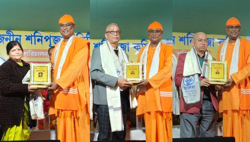 বরাক তরঙ্গ, ৯ জানুয়ারি : সংবর্ধনা, সম্মাননা প্রদানসহ বিভিন্ন সামগ্রী বিতরণের মধ্য দিয়ে শুরু হল কনকপুর হৃদয় সরণীর ৩০তম সর্বজনীন শনিপূজার দু’দিনব্যাপী কর্মসূচি। শুক্রবার সন্ধ্যায় প্রয়াত মলয় ভট্টাচার্য স্মৃতি মঞ্চে প্রদীপ প্রজ্বলনের মাধ্যমে কর্মসূচির সূচনা করেন শিলচর রামকৃষ্ণ মিশনের সম্পাদক স্বামী গণধিশানন্দজি মহারাজ। এরপর শুরু হয় বক্তৃতা, সংবর্ধনা, সম্মাননা প্রদান ও বিভিন্ন সামগ্রী বিতরণ। হৃদয়ের সভাপতি গুণজ্যোতি দত্তের সভাপতিত্ব অনুষ্ঠানে হৃদয়ের ‘আজীবন সম্মাননা’ প্রদান করা হয় ডাঃ অরুণকান্তি দাসকে। তাঁর হাতে সম্মাননা স্মারক, চাদর ও উত্তরীয় তুলে দেন মহারাজ গণধিশানন্দজি। এ ছাড়া বিভিন্ন ক্ষেত্রে অবদান রাখা পাঁচ বিশিষ্ট গুণীজনকে সংবর্ধনা প্রদান করা হয়।