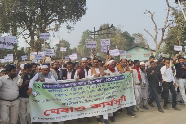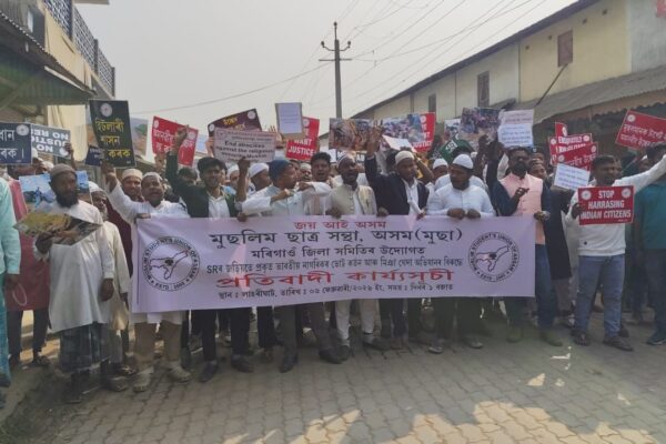 বরাক তরঙ্গ, ৬ ফেব্রুয়ারি : মরিগাঁও জেলার লাহরিঘাটে রাজ্যে মুসলিম মানুষের উপর সরকারে বঞ্চনা ও নির্যাতনের অভিযোগ তুলে এক প্রতিবাদী কর্মসূচি রূপায়ণ করেন। শুক্রবার মুসলিম ছাত্র সংস্থা অসম (মুসা)র মরিগাঁও জেলা সমিতির উদ্যোগে জুম্মার নামাজের পর লাহরিঘাট বজার থেকে দল করে থানার সামনে তীব্র প্রতিবাদ সাব্যস্ত করেন প্রতিবাদকারীরা। প্রতিবাদীকারীরা হিমন্ত বিশ্ব শর্মা মুর্দাবাদ, বিজেপি গো…