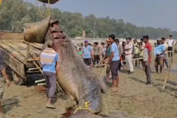 ৫ ডিসেম্বর : ওড়িশার বালেশ্বর জেলার ভোগরাই ব্লকের তালসারী সমুদ্রতটে উঠে এল এক বিশাল হাঙ্গর। প্রায় ৩০ ফুট লম্বা ও ৫০ কুইন্টালের বেশি ওজনের মৃত হাঙ্গরটি জালে আটকে পড়ে বলে জানিয়েছেন মৎস্যজীবীরা। মুহূর্তে চাঞ্চল্য ছড়িয়ে পড়ে তালসারির সমুদ্রতটে। হাঙরের কথা ছড়িয়ে পড়তেই ওড়িশার সৈকতে ভিড় জমান কৌতূহলীরা। ছবি, ভিডিও তোলার হিড়িক ওঠে। আর সেসব নিমেষের…