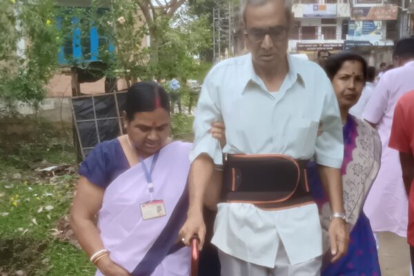 লাঠির ভরসা করে ভোটকেন্দ্রে পৌঁছলেন প্রবীণ নাগরিক