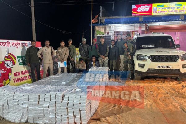 বরাক তরঙ্গ, ৯ ডিসেম্বর : শিলচর তারাপুর এলাকা থেকে অবৈধ সিগারেট উদ্ধার সহ দু’জনকে গ্রেফতার করল কাছাড় পুলিশ ও আসাম রাইফেলস। সোমবার নির্দিষ্ট গোপন সূত্রের ভিত্তিতে আসাম রাইফেলস ও কাছাড় পুলিশের যৌথ অভিযানে শিলচরের তারাপুর এলাকা থেকে বিপুল পরিমাণ অবৈধ “এসে লাইট” সিগারেট উদ্ধার করা হয়। অভিযানে মোট ৩,০৬০ প্যাকেট অবৈধ সিগারেট উদ্ধার হয়েছে, যার…